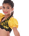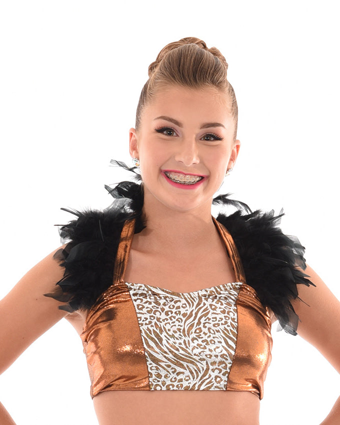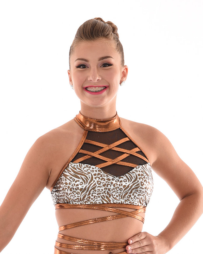 This Danznmotion two-tone crop top has mirror detailing at the front and back and features a small keyhole at chest. Perfect for dancers during class, convention or photoshoots. Fully lined front.