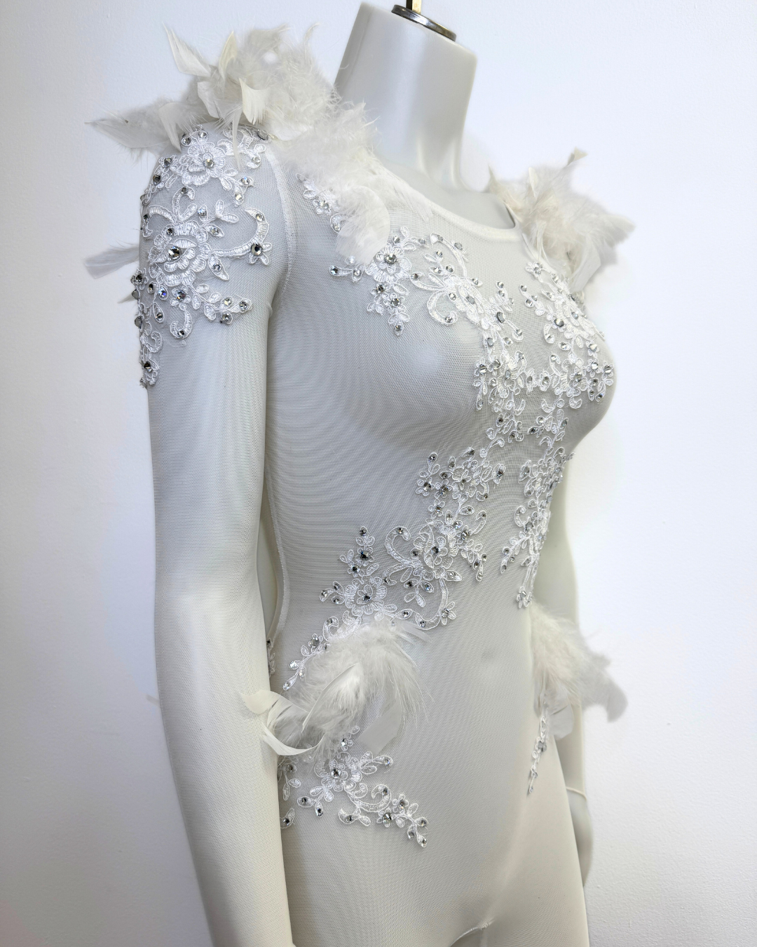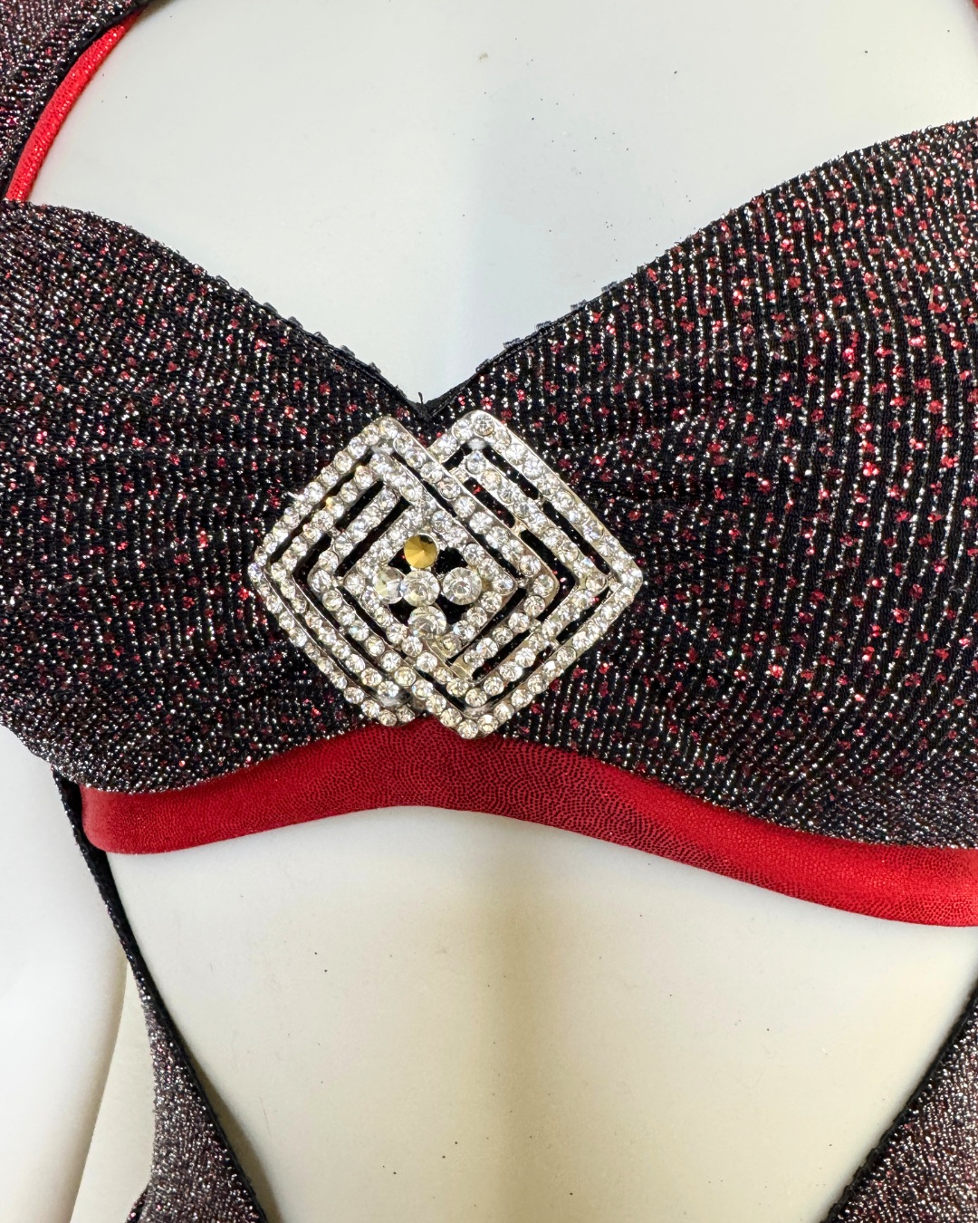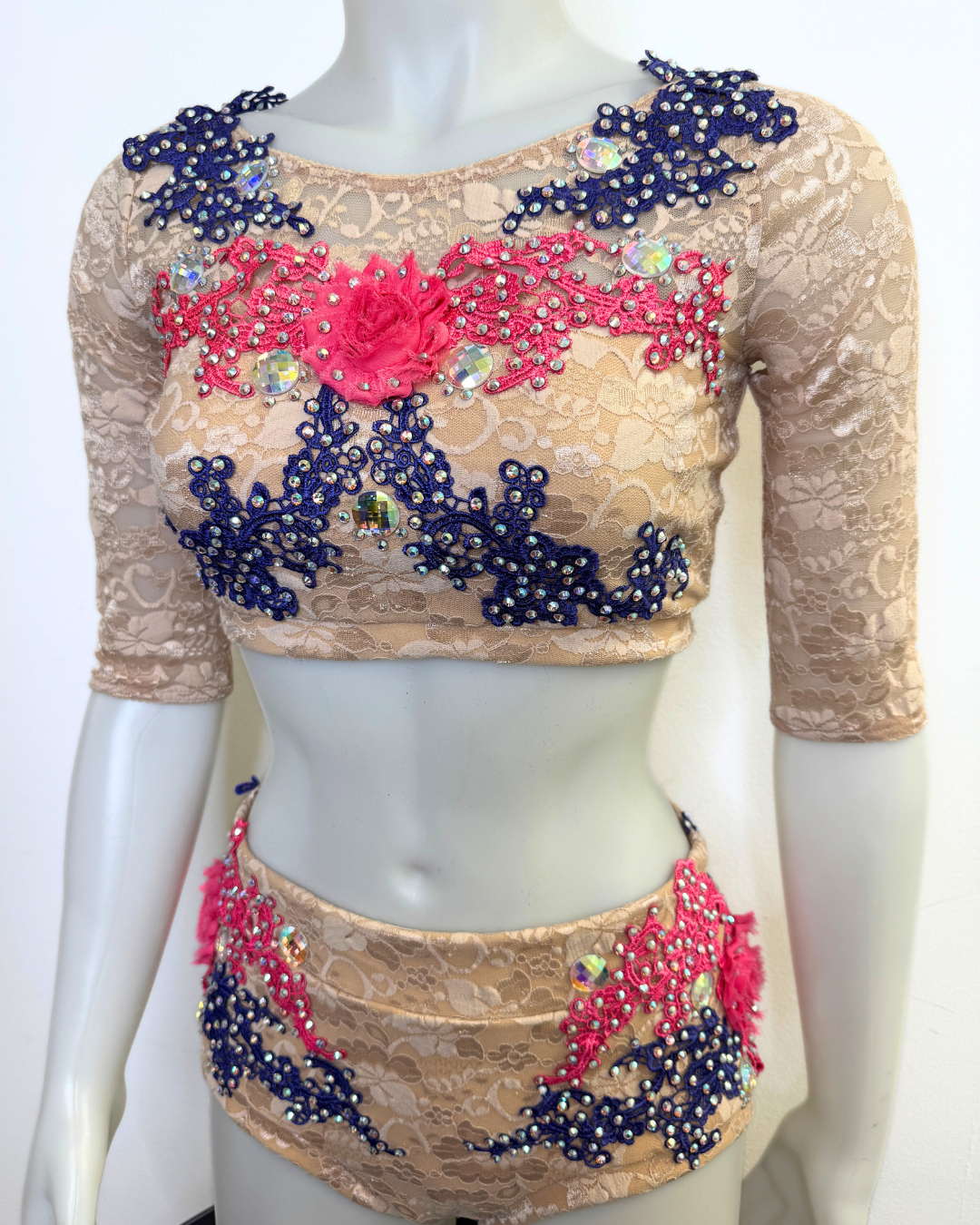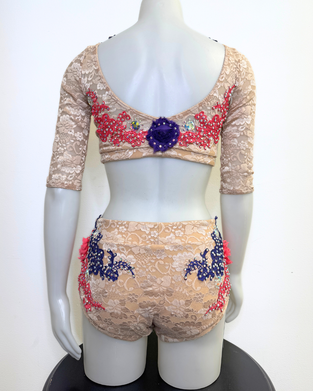This Danznmotion two-tone crop top has mirror detailing at the front and back and features a small keyhole at chest. Perfect for dancers during class, convention or photoshoots. Fully lined front.