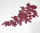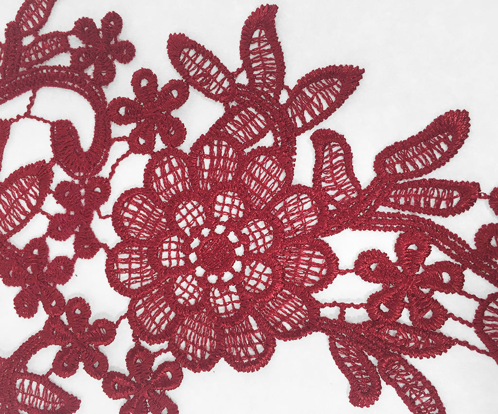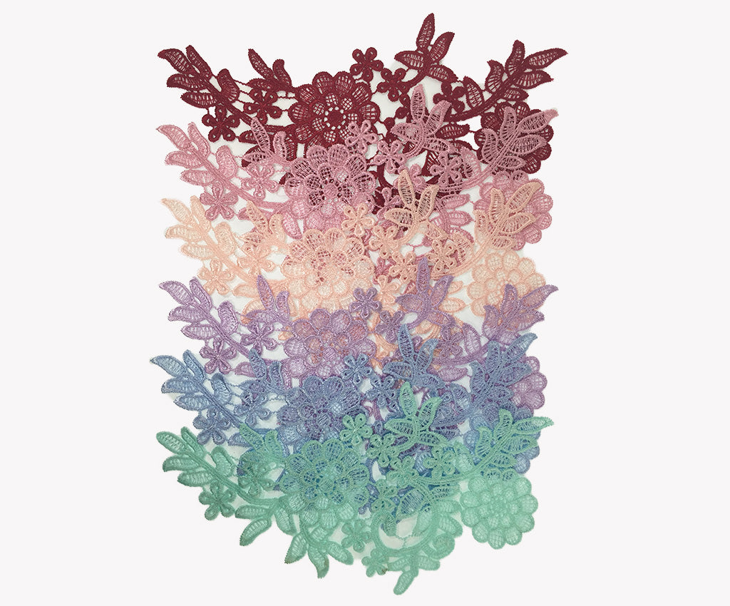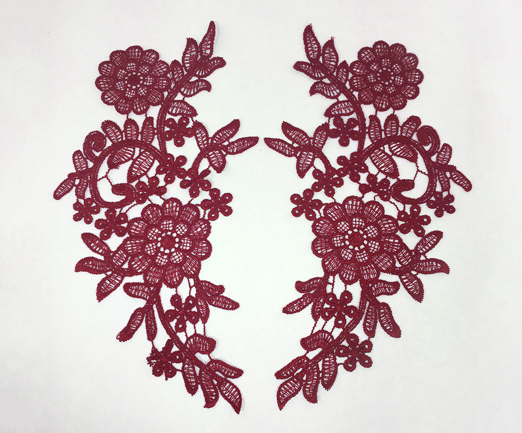 NEW! Satin finish crochet style large floral applique comes in a variety of colours. Approximately 10 1/2 X 6 inches each. Sold in mirrored pairs. Professionally packaged to protect product during shipping.