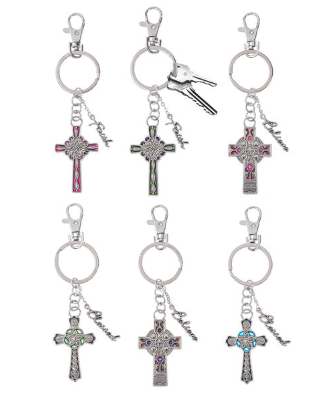 Elevate your everyday carry with these cross keyrings. Each keyring features a metal cross design paired with stained glass, creating a luminous interplay of light and colour. Choose from three meaningful designs, each with its own attached message: Blessed, Believe, and Faith, and each available in two colour palettes to suit your personal aesthetic. Whether adorning your bag, securing your keys, or serving as a thoughtful gift, these keyrings offer a subtle yet powerful way to express your convictions and add a touch of elegance to your daily routine.