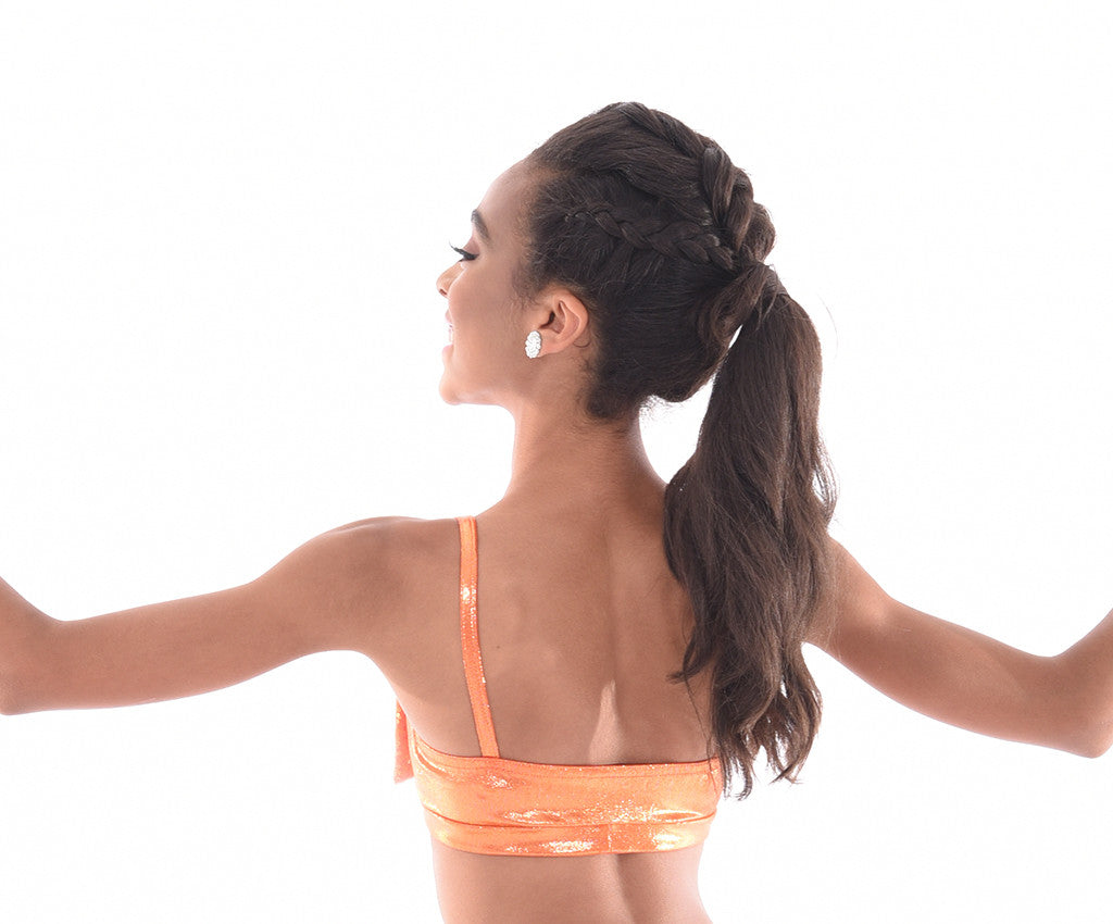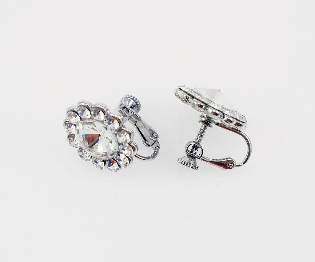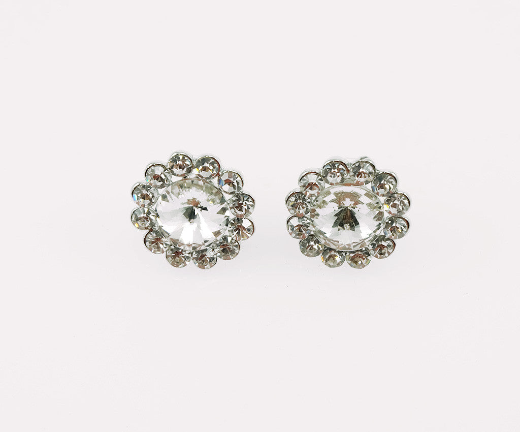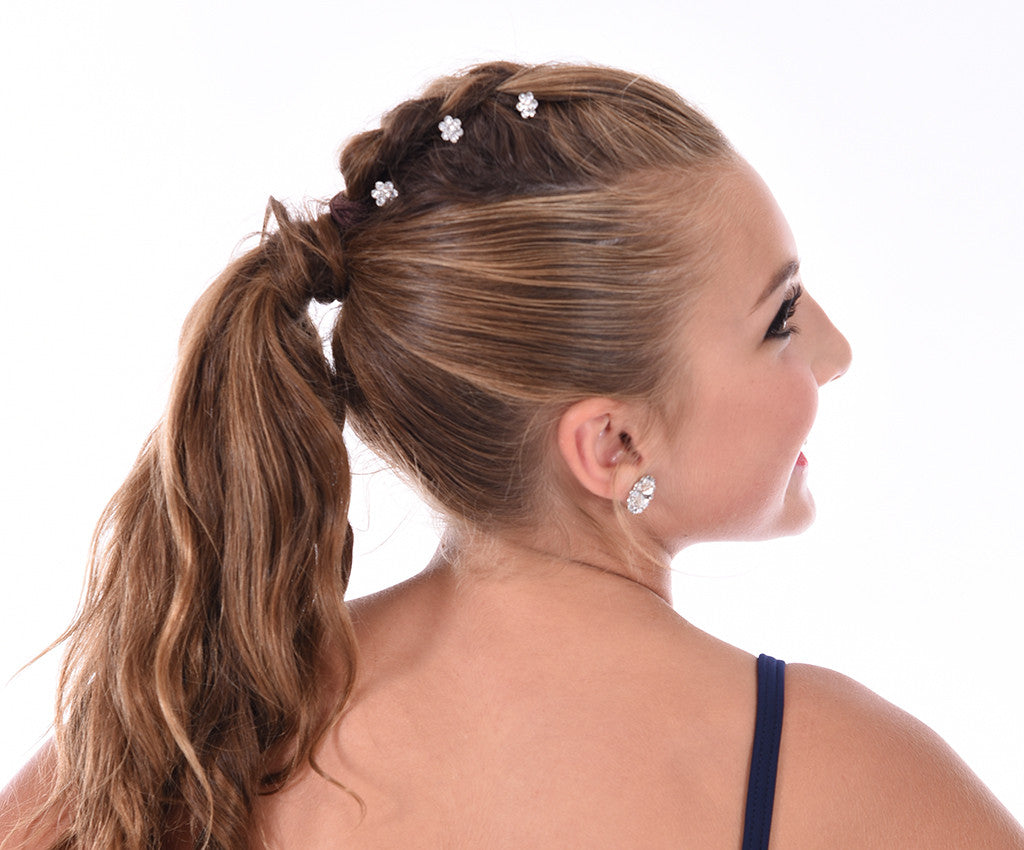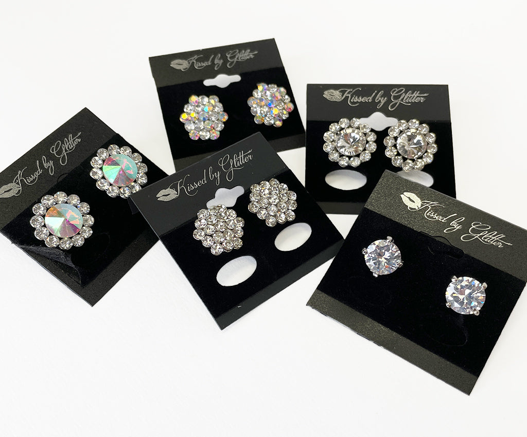 These Kissed By Glitter crystal rhinestone earrings have a large center shimmering rhinestone surrounded by smaller stones to sparkle up any stage. The AB option has a large AB stone in the center surrounded by crystal stones. Shimmer beautifully - perfect size for all aged dancer or performers and great for special occasions.