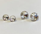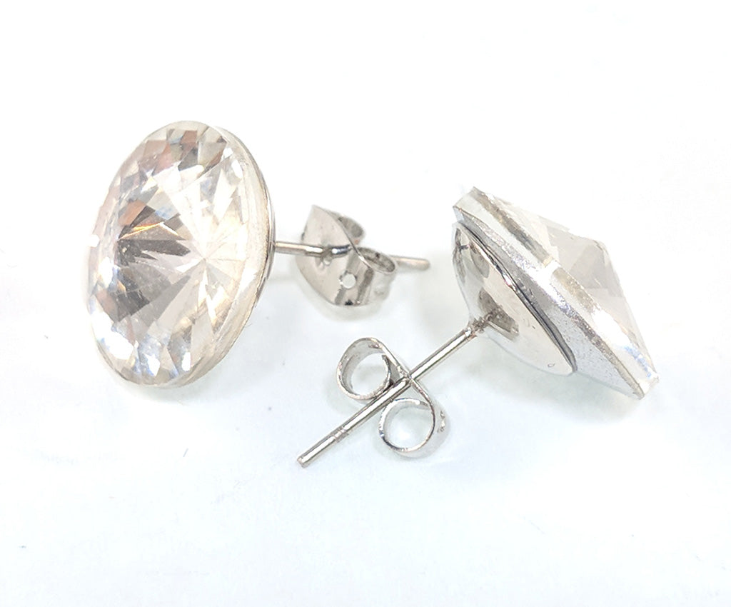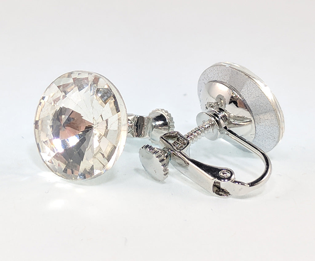 These Kissed By Glitter crystal rhinestone earrings have a single shimmering rhinestone for a simple but dynamic sparkle. Great for stage or for that special occasion. They come with either pierced or clip style backs and in two sizes. The Small size measures 3/8" (or 10mm) in diameter. The Large size measures 5/8" (or 15mm) in diameter. The Pierced style comes with a butterfly backing.