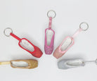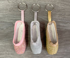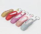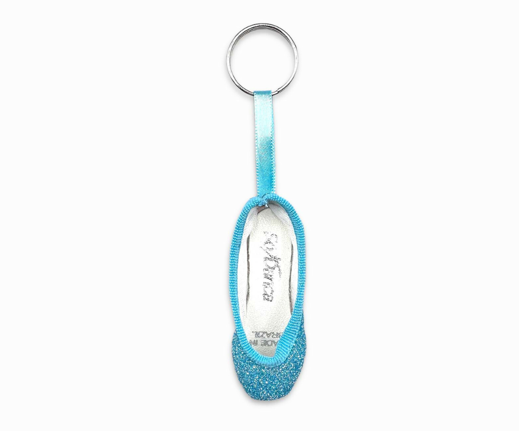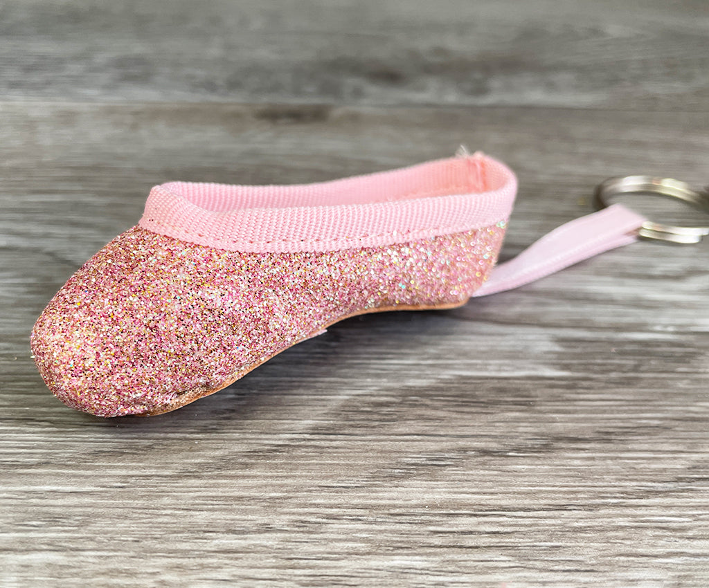 This glitter pointe shoe key ring is great for adding to your dance bag zipper, a purse or your key chain. A great gift for a dancer. Hangs 4.5"long from key ring, shoe is 3" long.