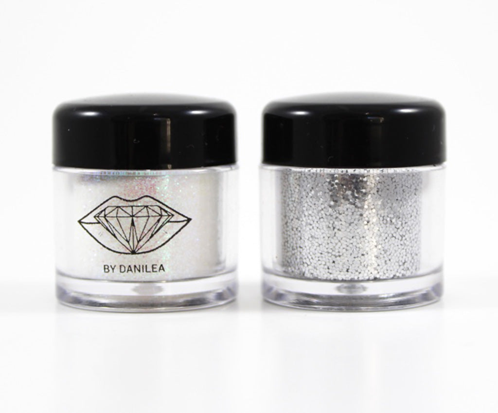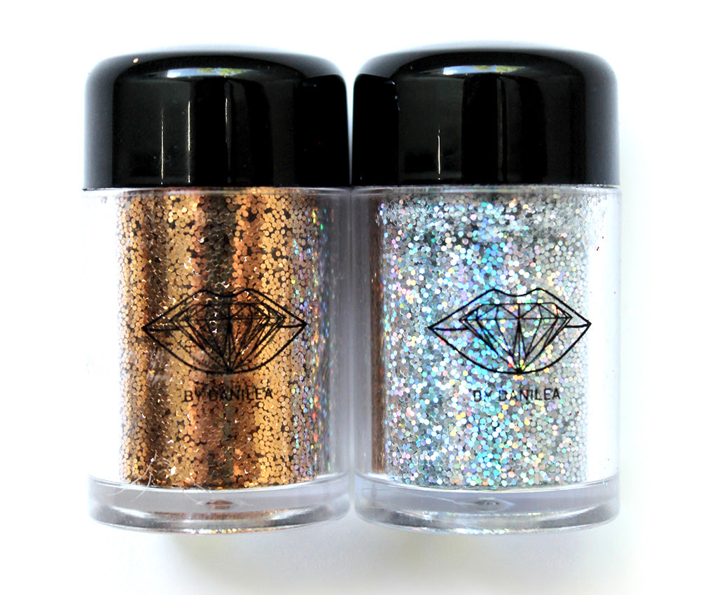 Available in several colours in the large size container. Mini size in gold, silver or white only.