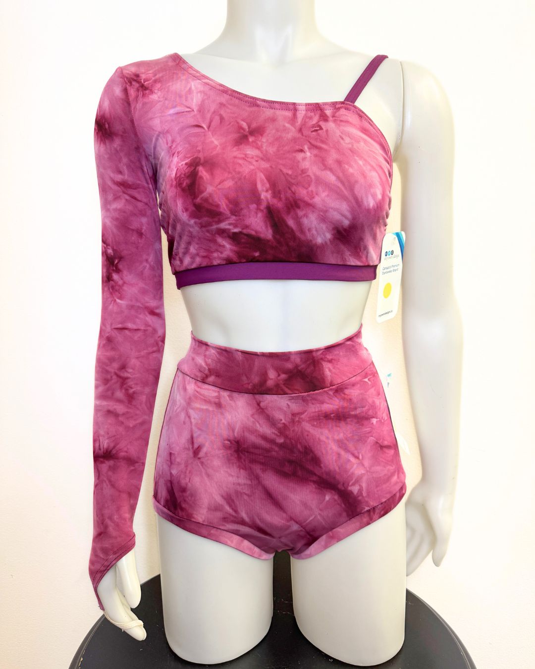 2 Piece - Tie Dye Asymmetric Top & Accent Hot Short