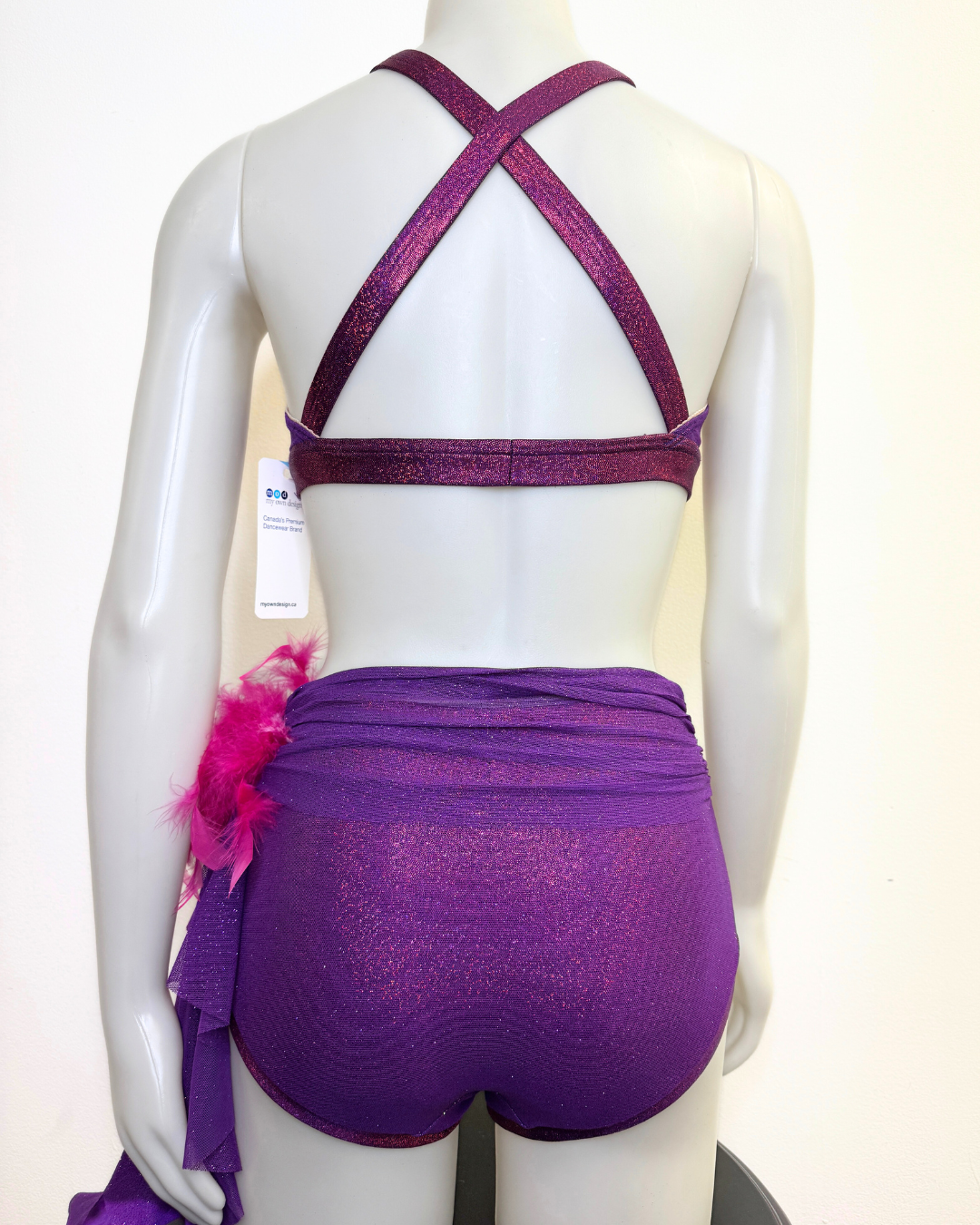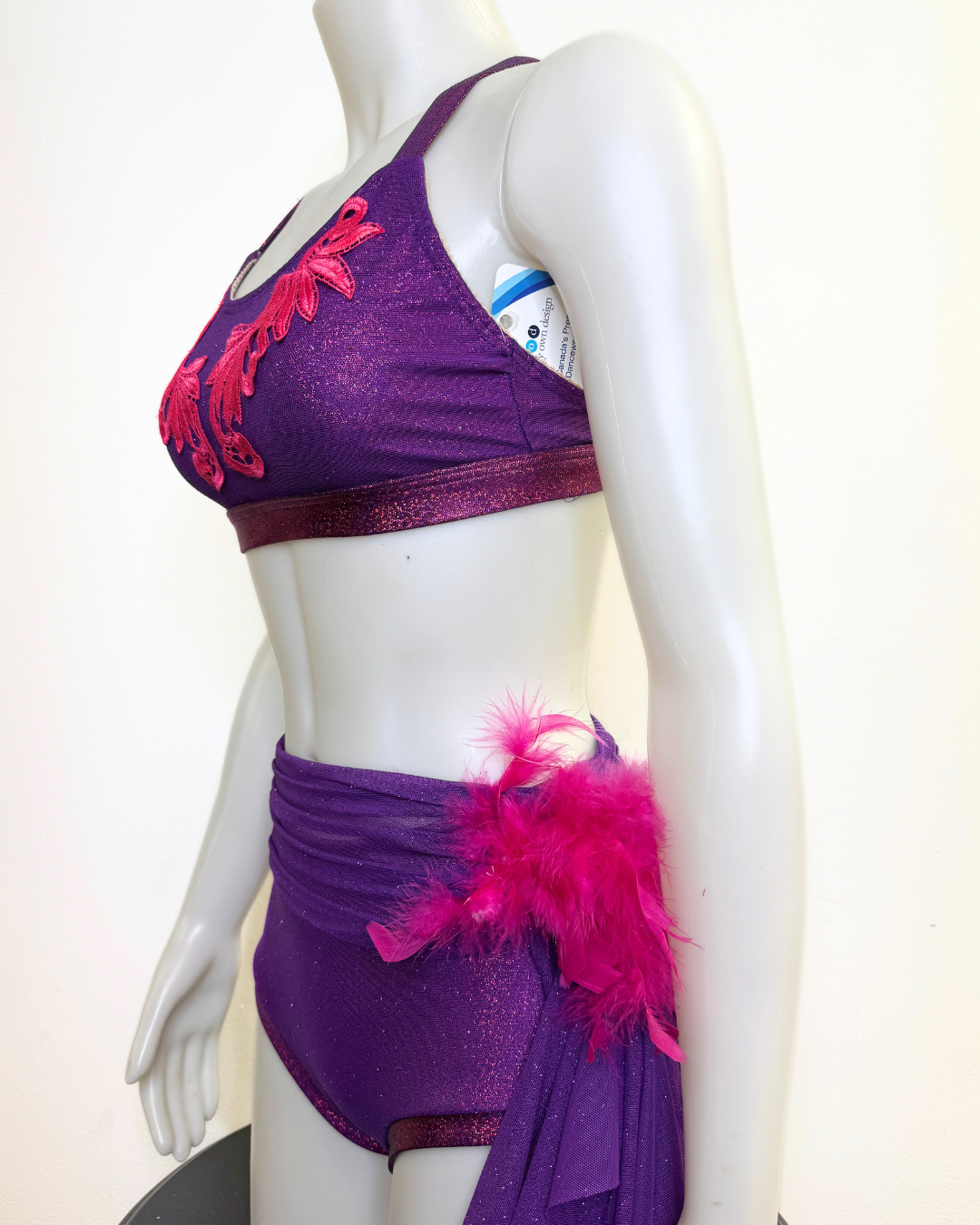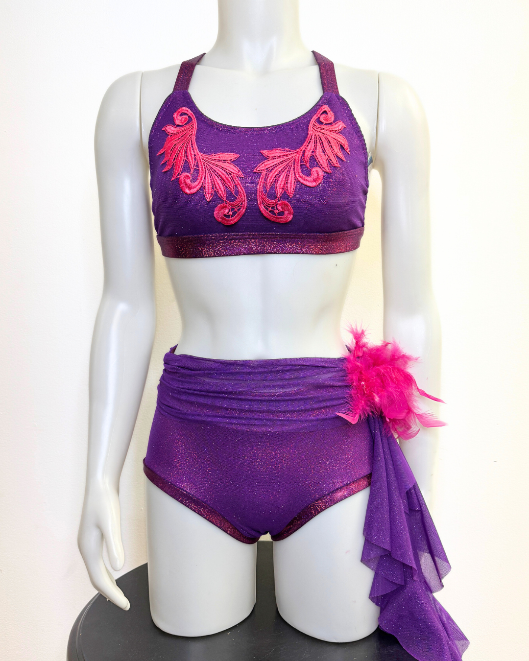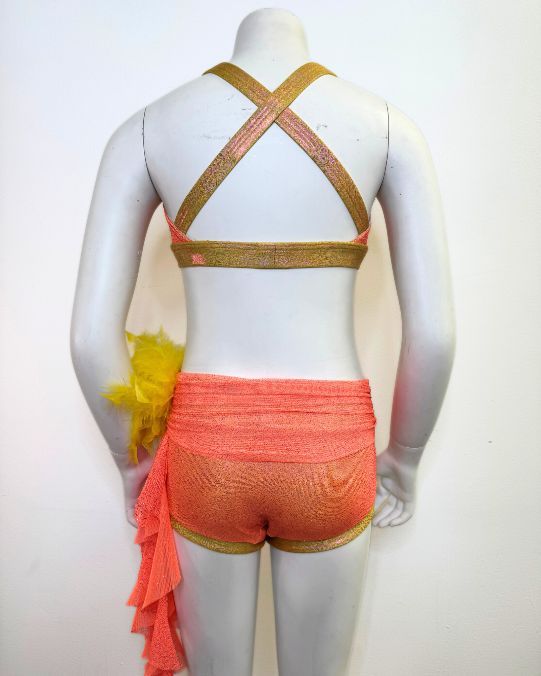 2 Piece - Tail Feather Open Front Bodysuit & Cross Back Top