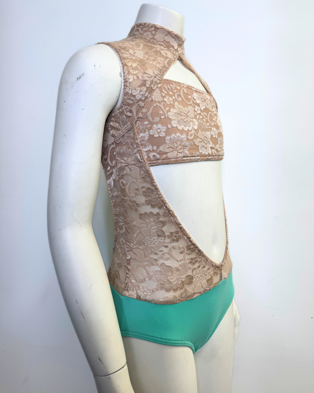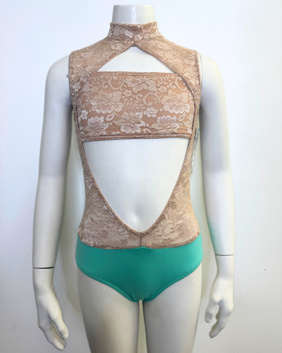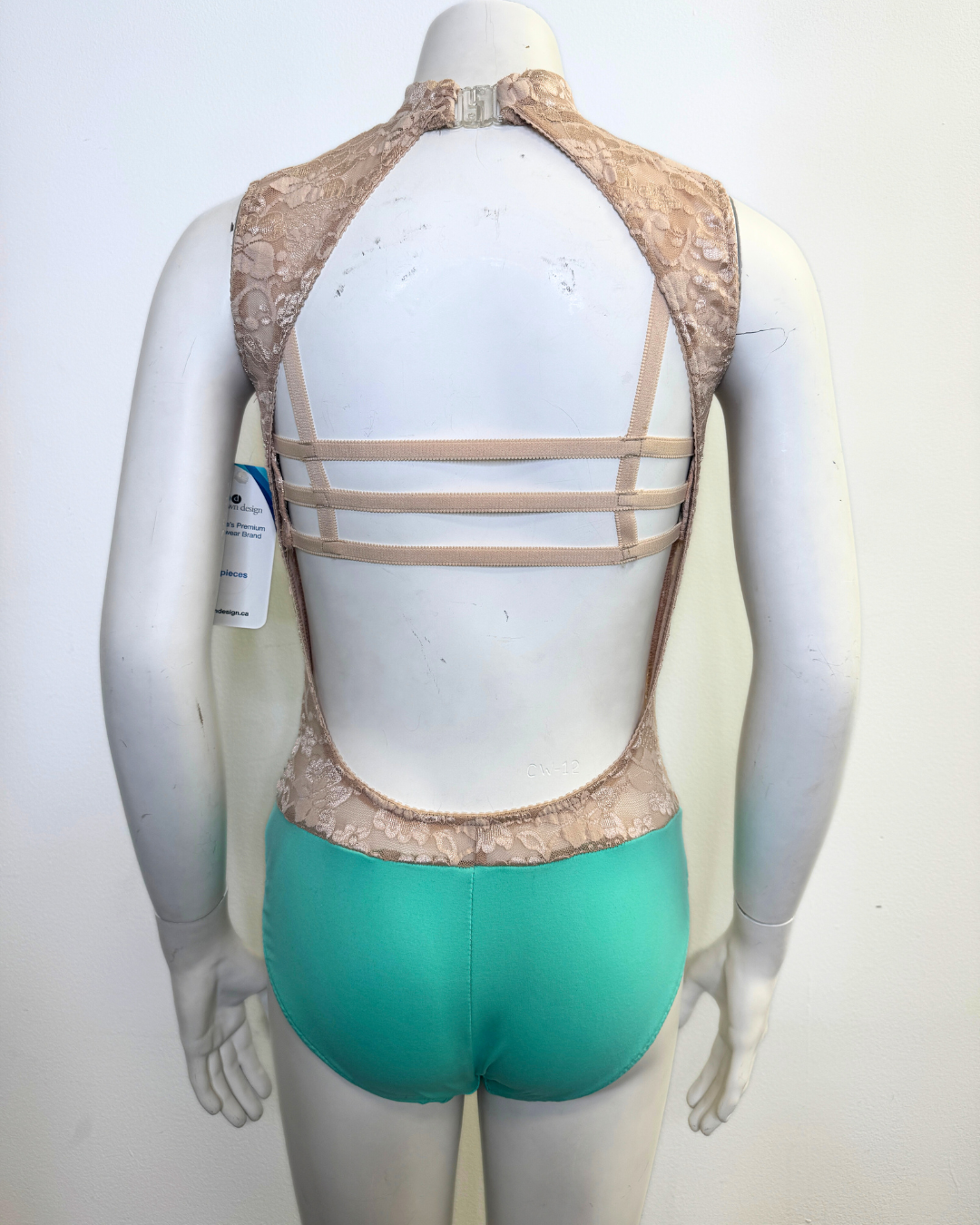 2 Piece - Spring Open Front Lace Leotard with Bra Top