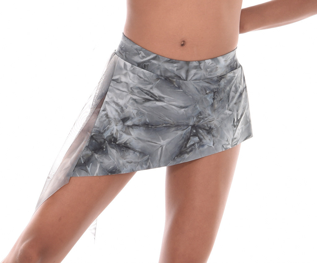 2 Piece - Tie Dye Cold Shoulder Top & Angled Skirt - Grey