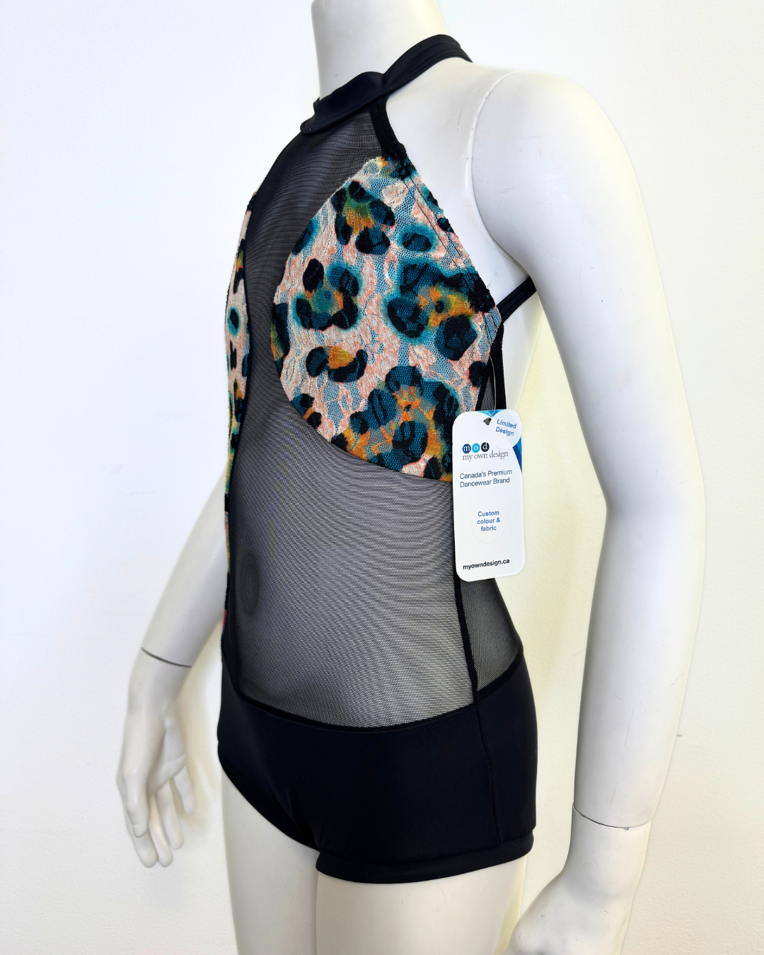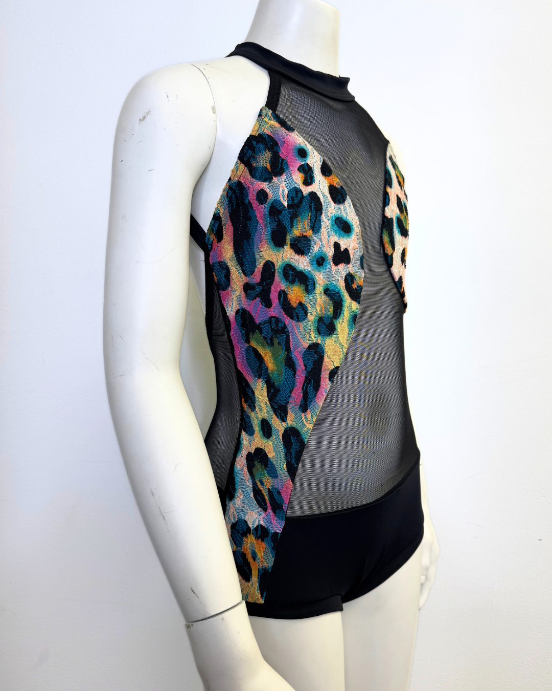 Asymmetric Illusion Leotard - Leopard Print