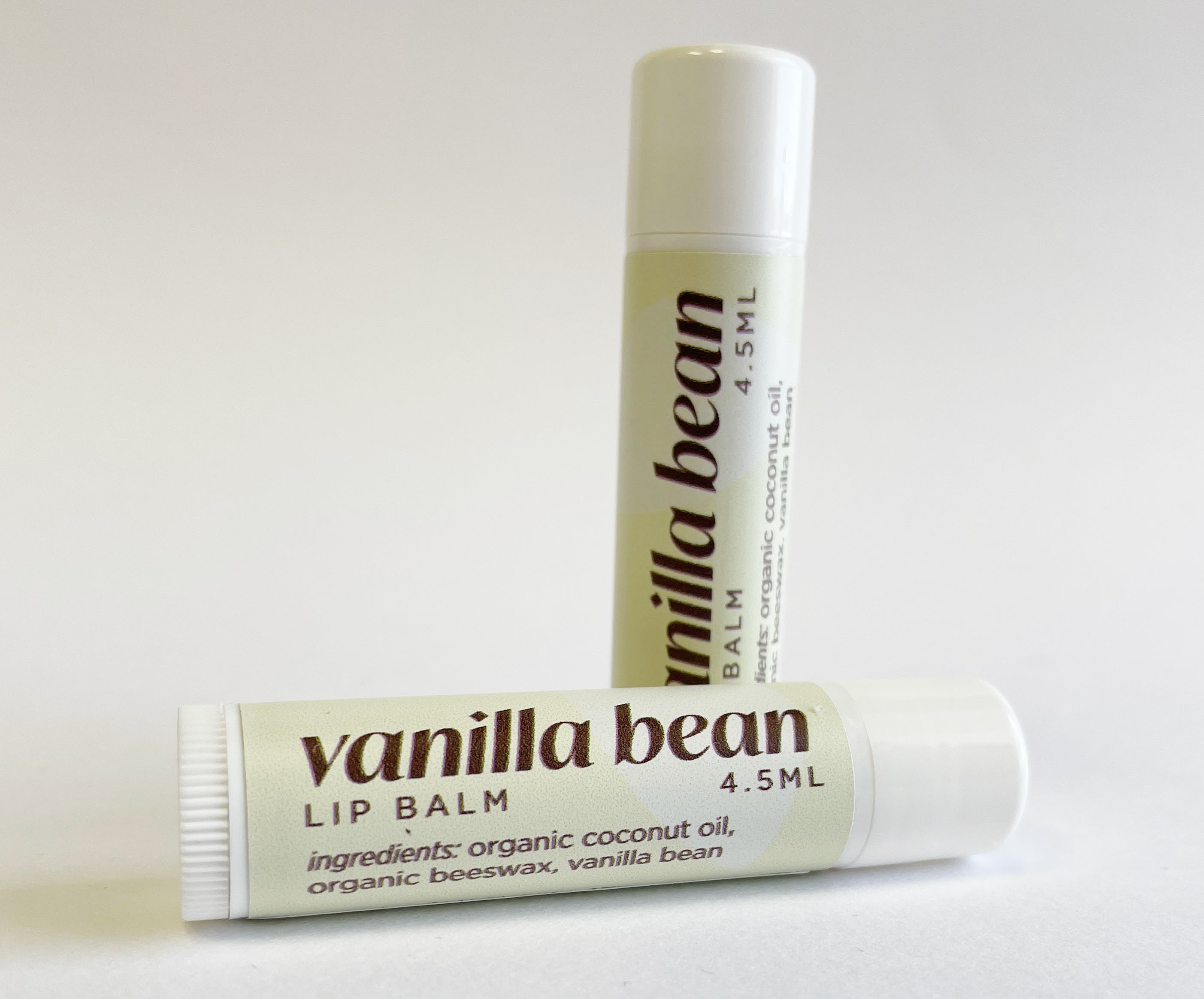 Ingredients: Organic coconut oil, Organic beeswax, Vanilla bean flavour oil (natural extract, organic sunflower oil, stevia).