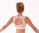 This stunning top is both flattering and comfortable, with elegant sequin lace overlaying cream supplex. A subtle sequin flower in the centre adds an elegant touch, with soft elastic under edges adding extra comfort. Lined front panel, plastic clasp closure.