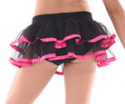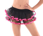 Fun and funky, the matching 2-layer organdy skirt pops with a coloured ribbon edge. Featuring a glitter slinky waistband and attached lined lycra panties.