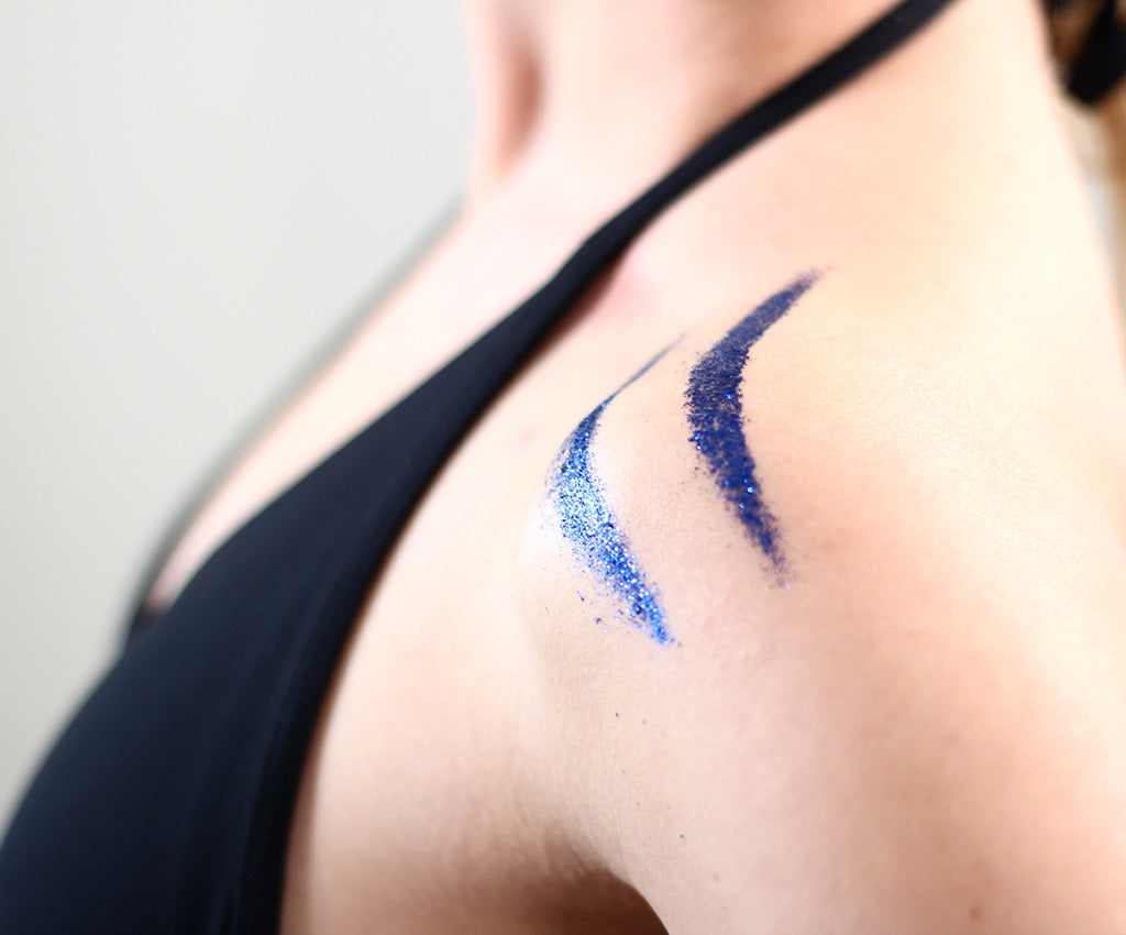 Use this Stage Beauty Co. Glitter Glue with Stage Star Crystals. This glue can be applied to body, face or hair. Be creative with shapes/designs or apply evenly all over to shimmer and shine on stage or at that special event.