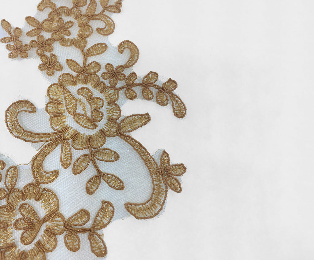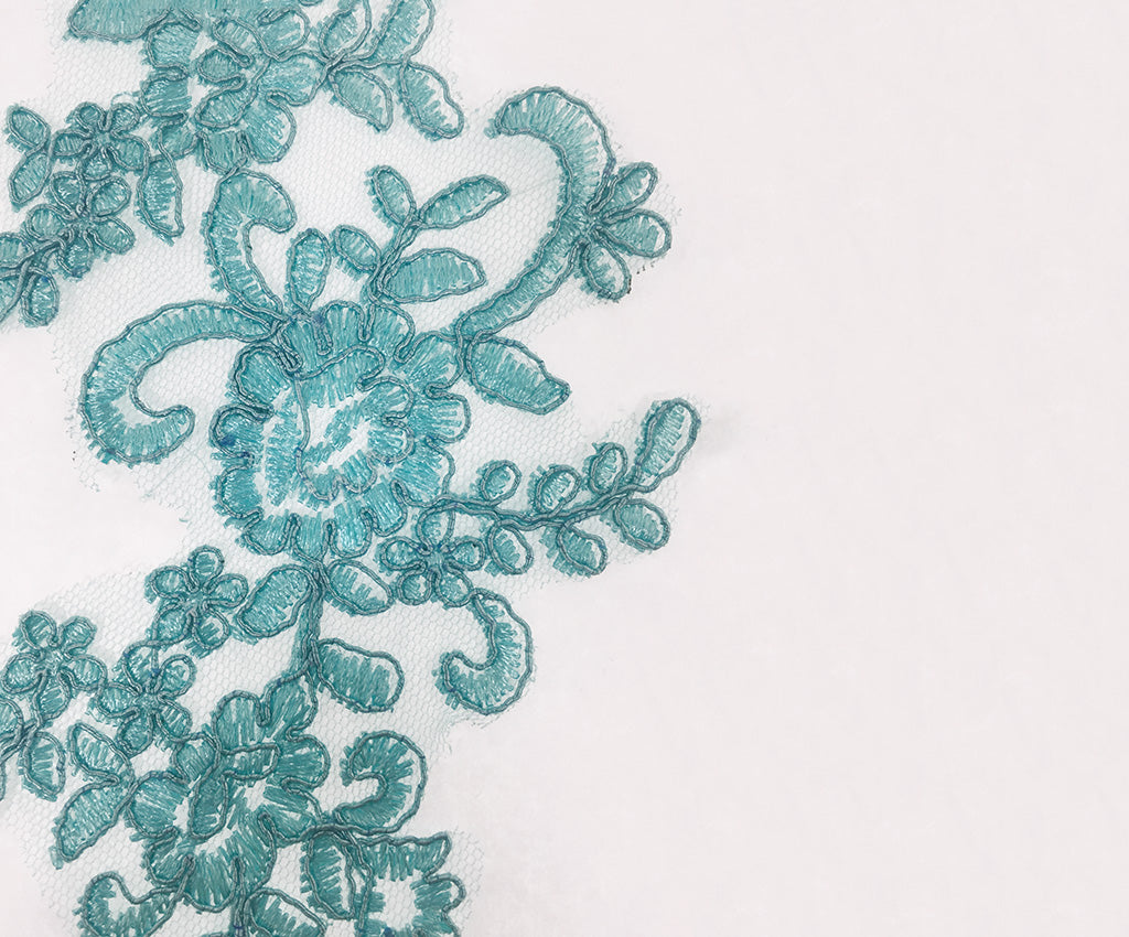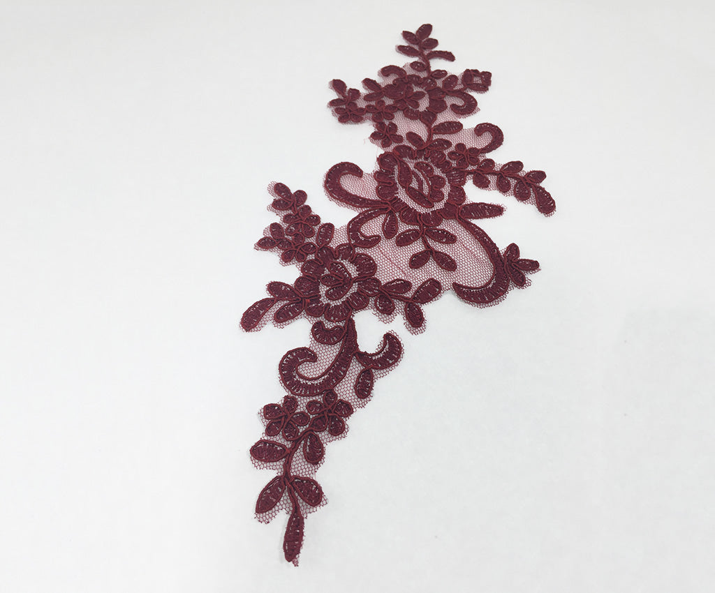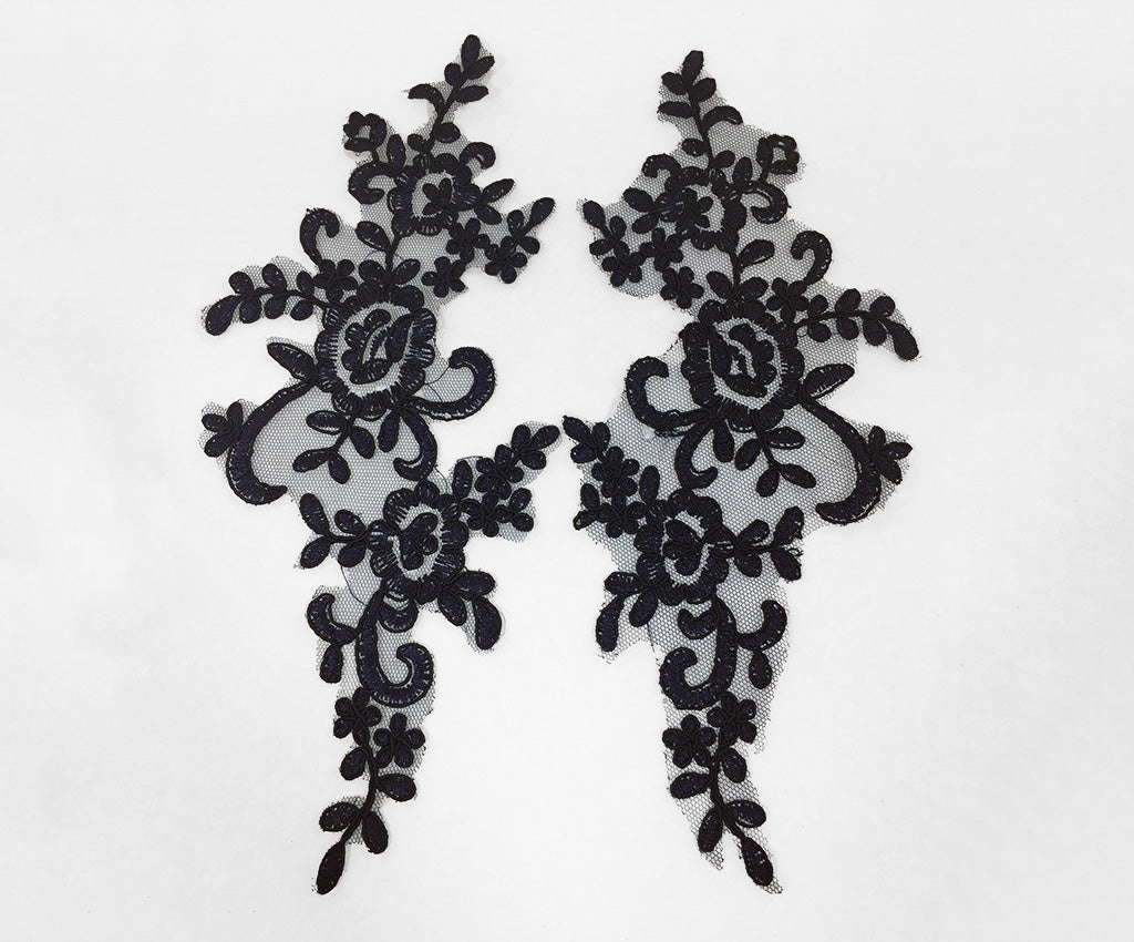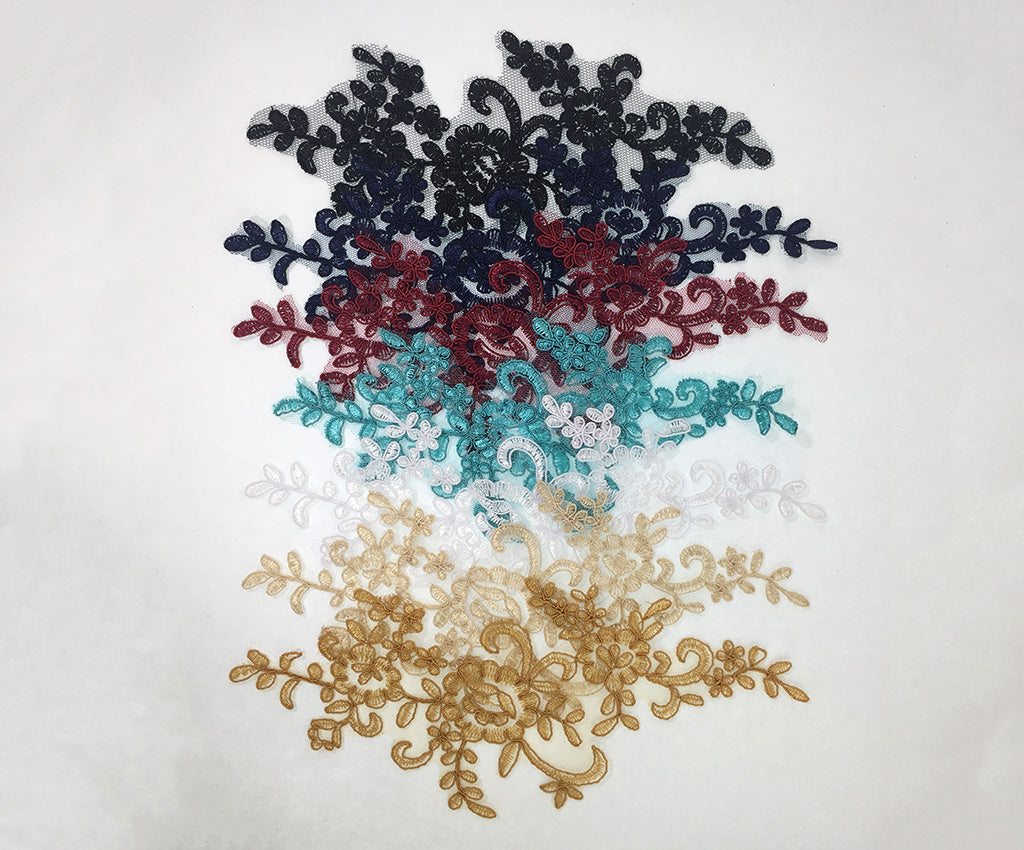 This satin finish floral applique is corded for a pop of colour and texture. Mesh backed these classy appliques come in a variety of jewel and pastel colours to match any outfit. Approximately 10 X 4 1/4 inches each. Sold in mirrored pairs. Packaged to protect product during shipping.