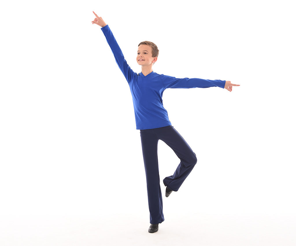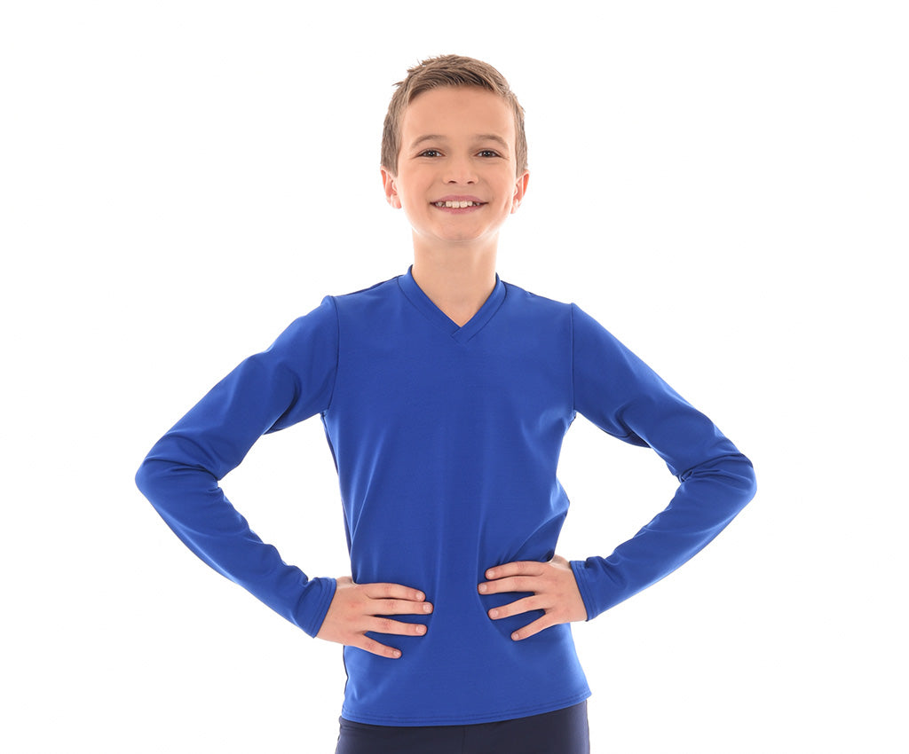 MOD's boys v-neck long sleeve is made from comfortable quality supplex. It has a fabric band around the neckline and a slightly relaxed fit.