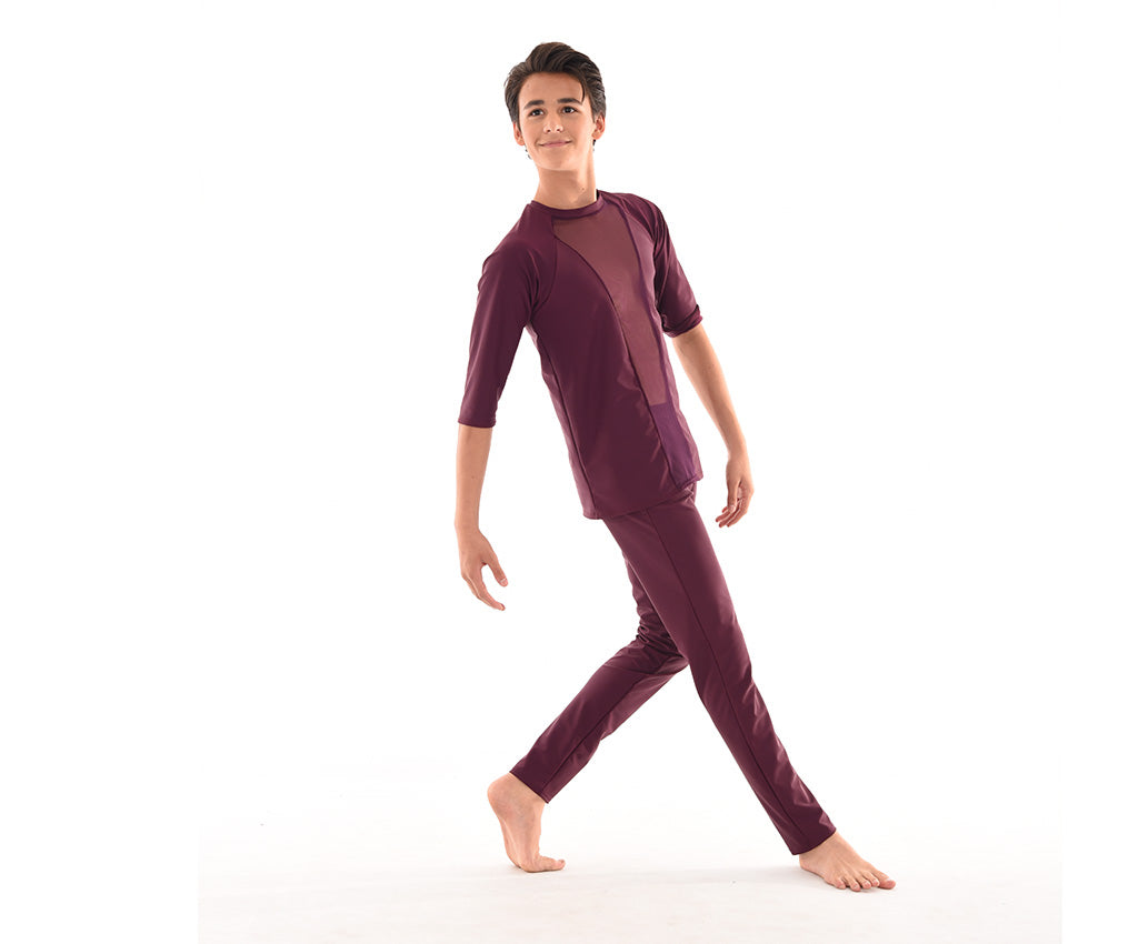 This classy top of breathable UV treated high quality Italian Spandex and quality mesh is so comfortable.  Looser fitting with a higher neckline and soft fabric neckband, there is a stylish matching mesh insert on the front and a raglan cut 1/2 sleeve. With professionally finished hem & sleeve this top is  available in a large range of colours to match girls Convention Wear and compliment other collection pieces.