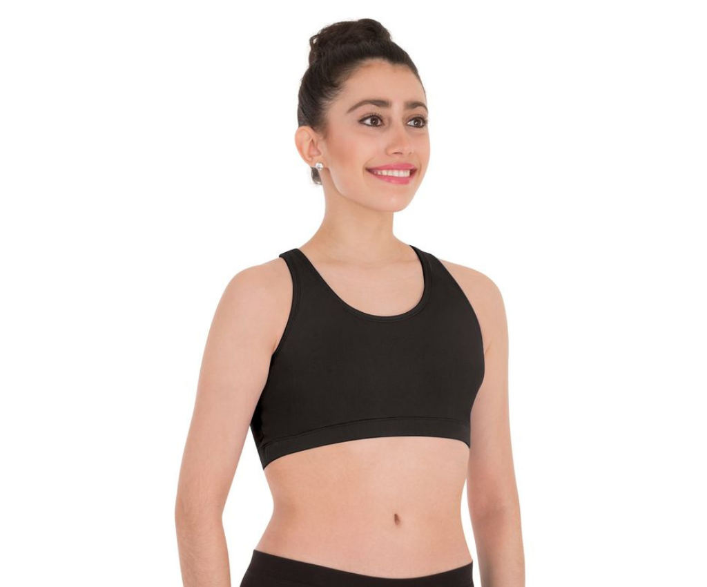 This Bodywrappers supplex T-Back crop top is a staple for any dance or workout. Girls and Ladies sizes with memory stretch front lining.