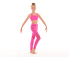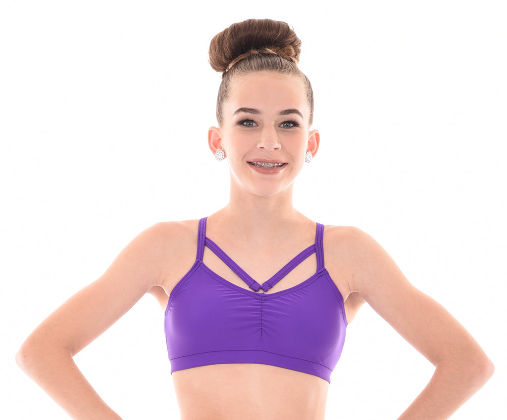 This MOD exclusive design bra top in high quality breathable, UV treated matte Italian spandex sports a stylish stretchy mesh back with keyhole opening and a V front with a flattering pinch. The trendy double V strapping adds a little pizzaz. Lined front and wrapped elastic bra band for added comfort & security. A versatile piece; when matched with bottoms from Convention Wear or many other Collections this top is great for dance class, conventions, stage, the gym or even the pool.