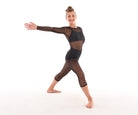 This mesh capri length unitard is so versatile you can use it for many different styles of dance. Made from quality stretch mesh with a high scoop neckline, long sleeve with finger loops and capri length legs. Can be worn over or under tops, bottoms or leotards. Great for adding a little extra coverage. Or make it a special unique costume by adding some appliques, flowers and rhinestone pieces from our Design it Yourself Collection.