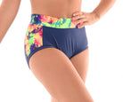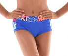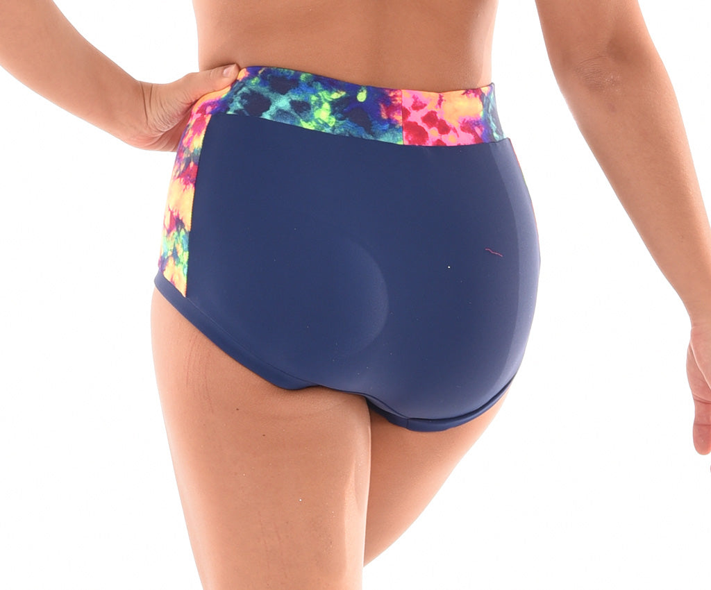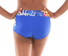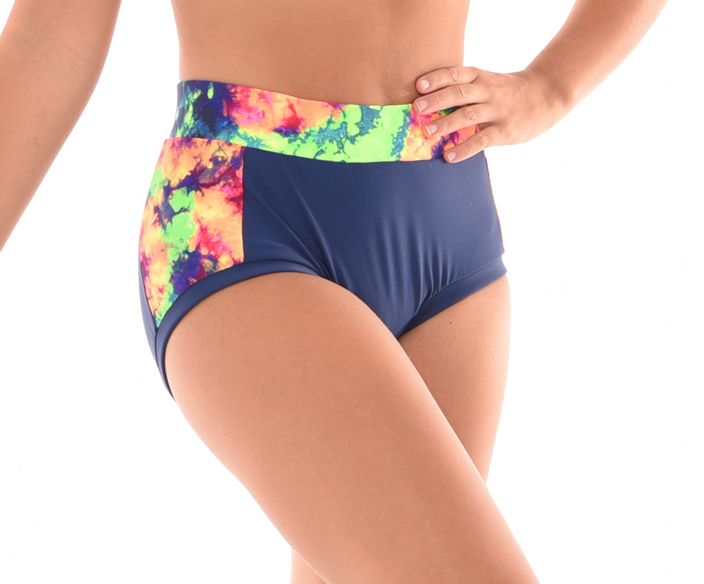 MOD's signature no ride shorts! Made in quality supplex or italian lycra. Featuring a splash of print fabric on the sides and wrapped 2 inch elastic waistband. Lined front and wrapped elastic legband. Perfect in between length for any dance move. With a seamless back and superb fit match with a variety of print tops.