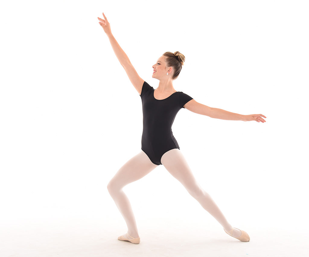 MOD’s basic cap sleeve leotard in comfortable quality supplex. Simple scoop neckline, fully lined front, with elastic finished neckline and leg-line. Superior comfort and fit ideal for class. Available in Royal Academy of Dance exam colours!