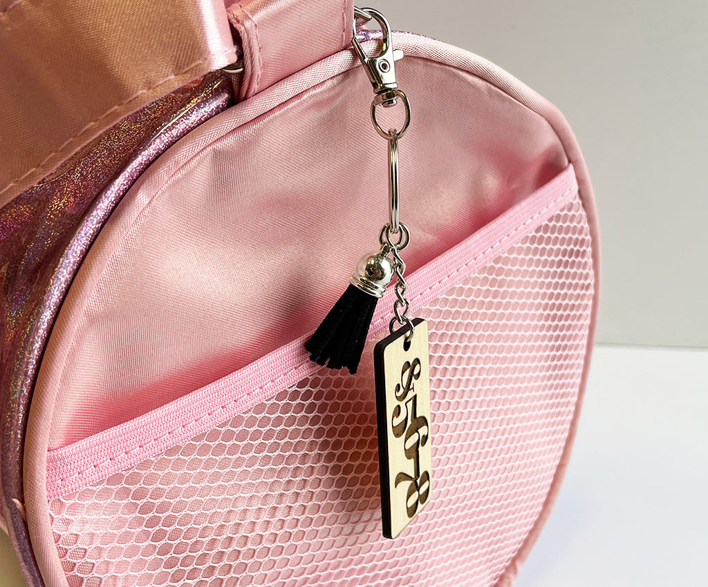 Perfect accessory for any dance enthusiast! Attach to your dance bag, gym bag, school backpack, keys, purse, garment bag or where ever you want to show it off. Also great for dance teacher gifts too!