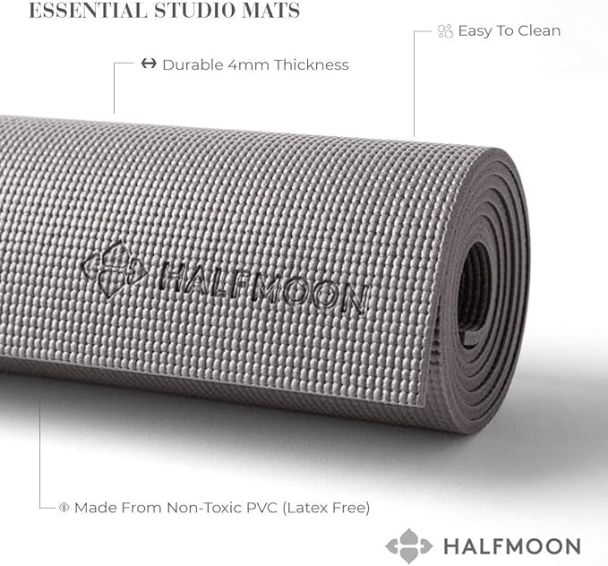 B Halfmoons most widely-used mat is ideal for any yoga practice from energetic to restorative, at the studio or at home. Sticky and durable, moderate cushion while still being compact enough to take to-and- from the yoga studio with ease.