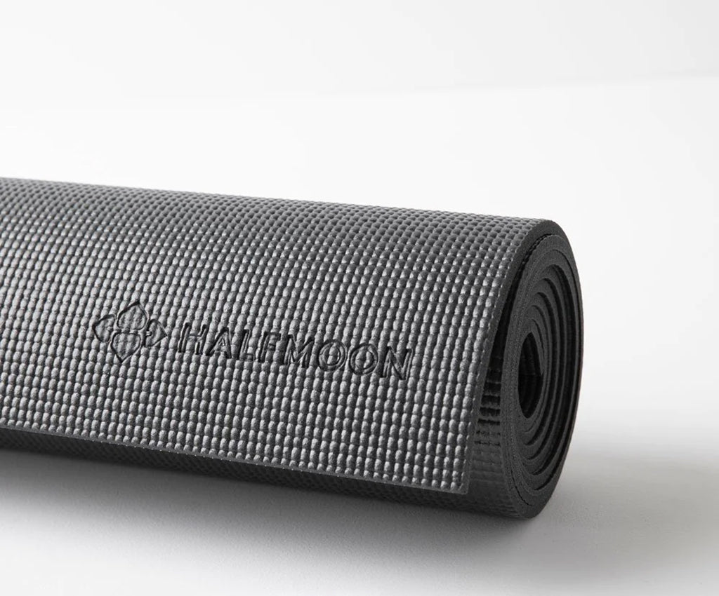 The Halfmoon Deluxe Studio Mat is 6mm thick for an extra soft, comfortable, and gentle practice surface. Designed to provide yogis with generous cushioning for daily asana, the Deluxe Studio Mat is suitable for all styles and all levels of yoga, pilates, and conditioning, even when layered on hardwood or concrete floors. Also great for dancers or home workout exercise.