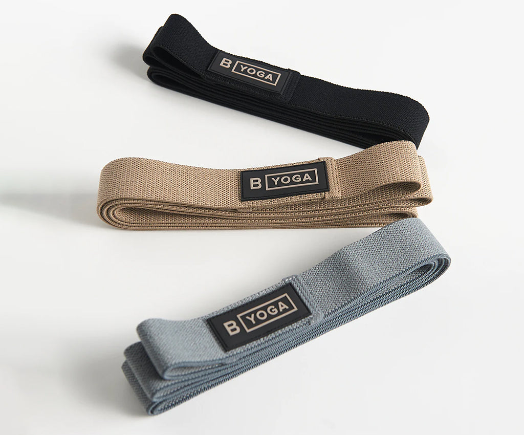 - Set of 3 long resistance loop bands: light, medium, and heavy