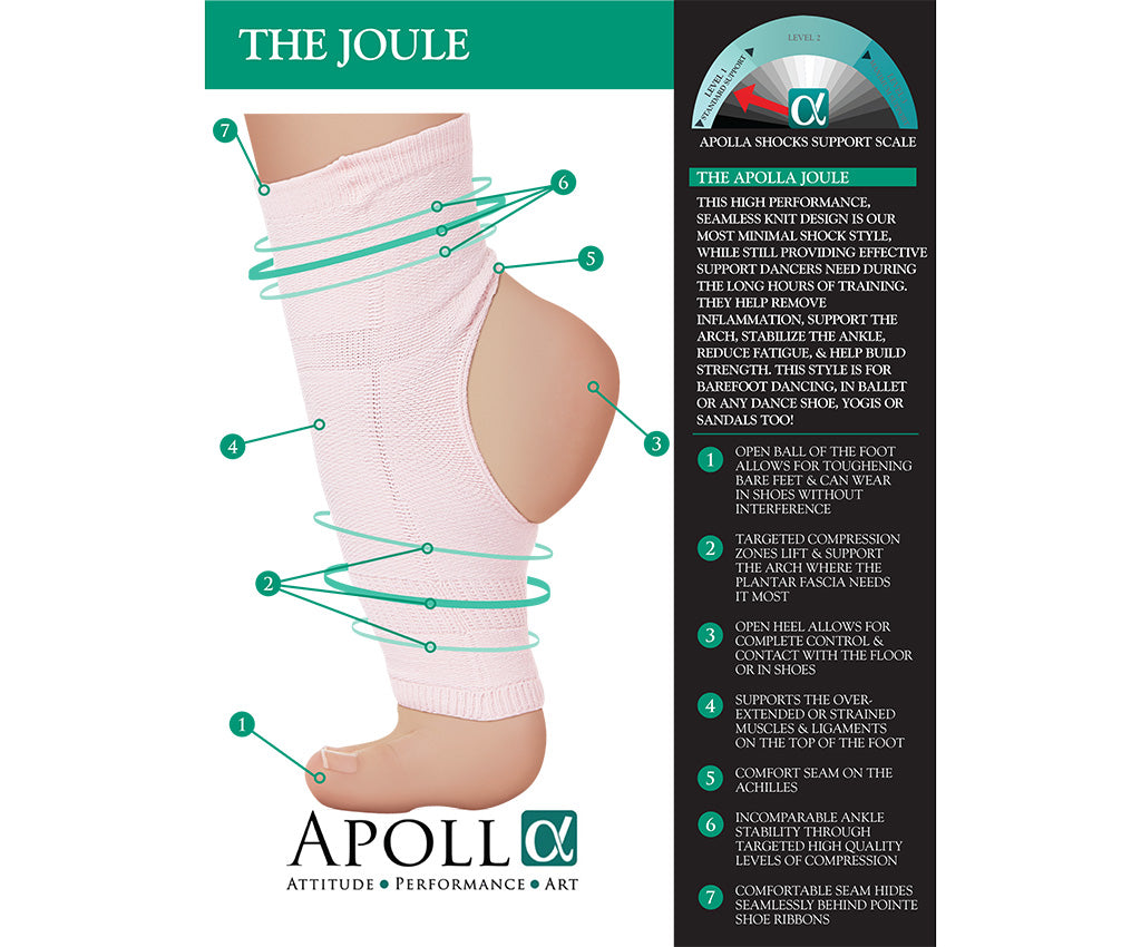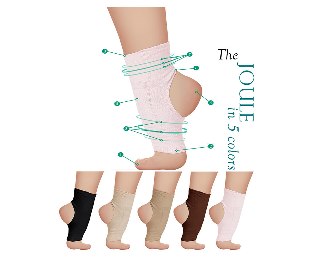 The Joule Shock is an ankle compression open toe and heel sock. For barefoot dancers or to be worn over pointe shoes, in ballet shoes or any shoe. You will love all the ways you can wear it while dancing or working out.