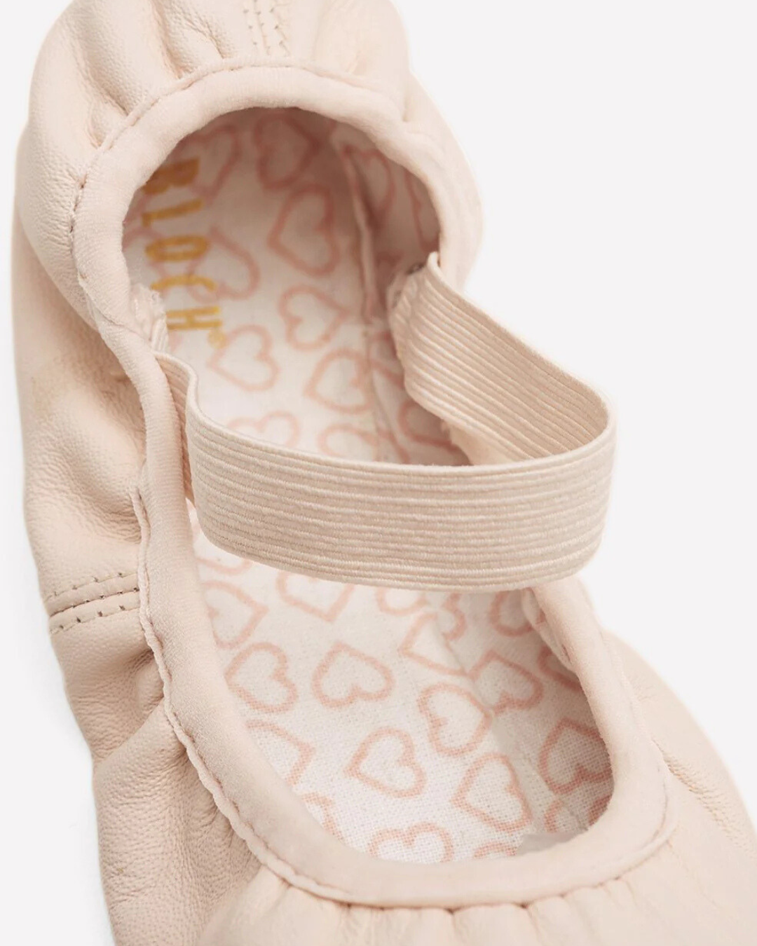 Belle is the perfect ballet flat for the student. Soft leather ballet slipper with pretty printed heart lining which makes for a feminine ballet aesthetic.