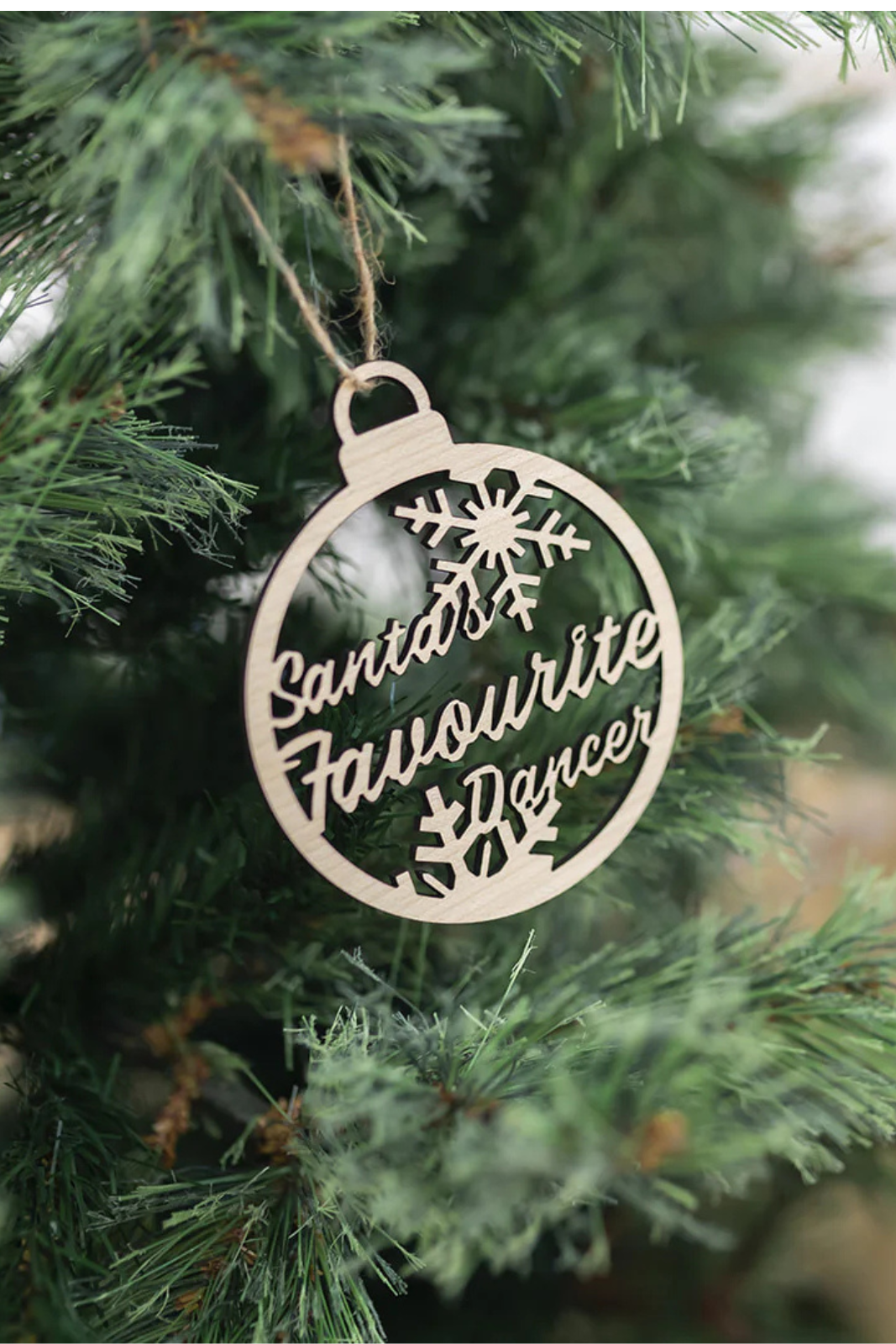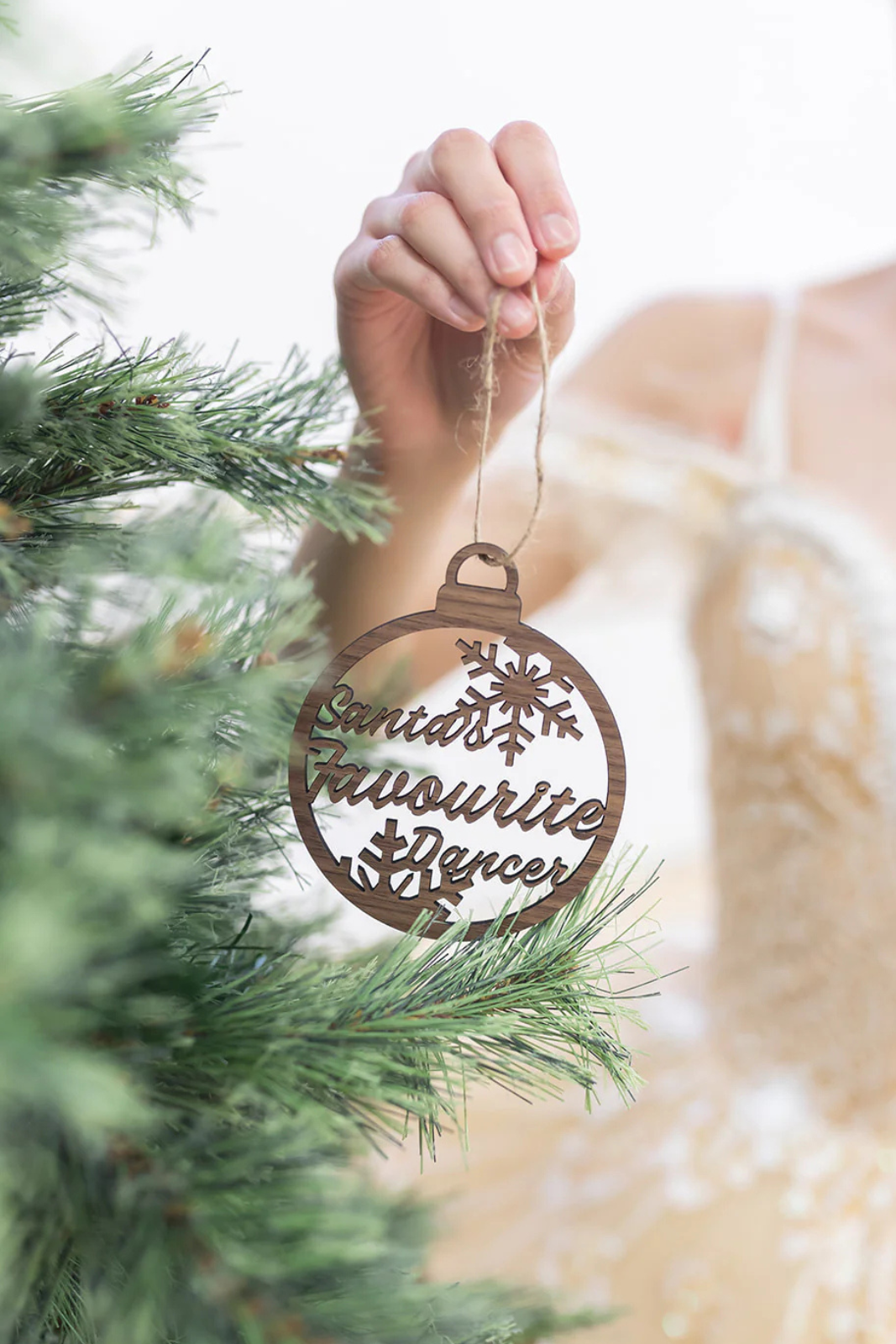 Give your holiday tree a personal touch with this Santa's Favourite Dancer Christmas tree ornament by Rhythm Jewellery. Made from high quality solid Canadian walnut or maple. A charming addition to your Christmas tree or as a gift topper for that someone special.