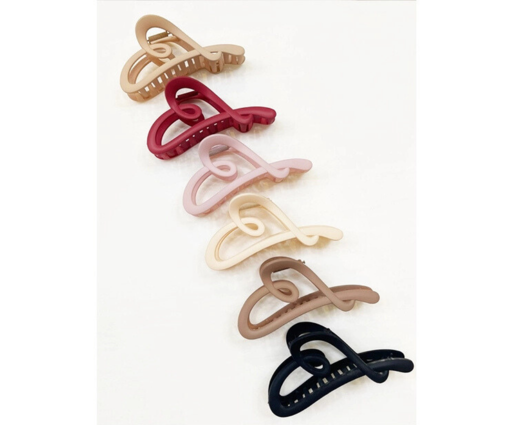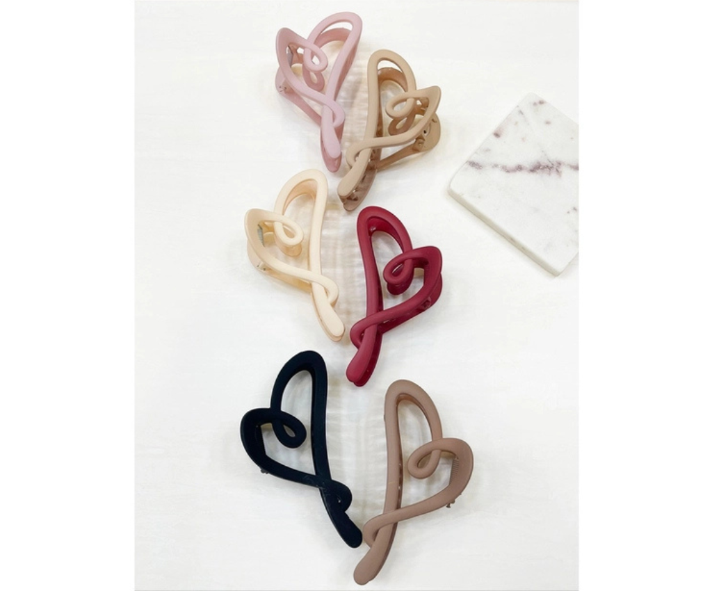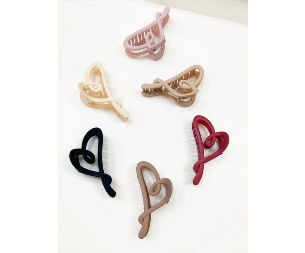 Simple asymmetrical heart shaped claw clip with a matte finish. Great for a variety of hair types and lengths.