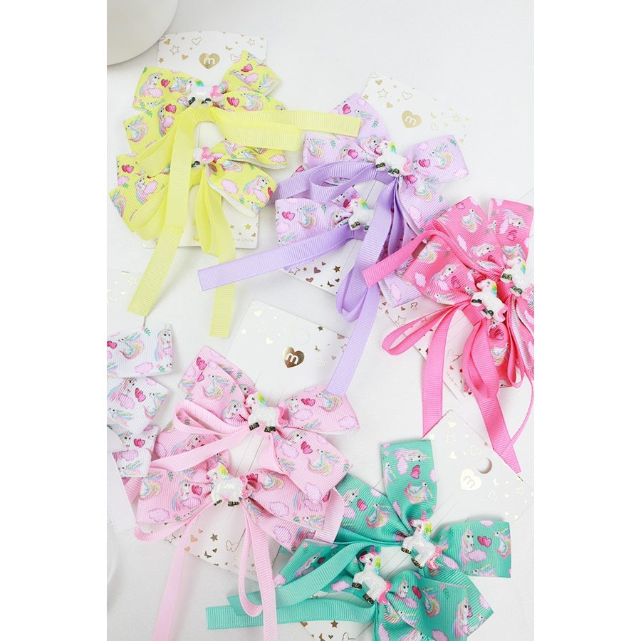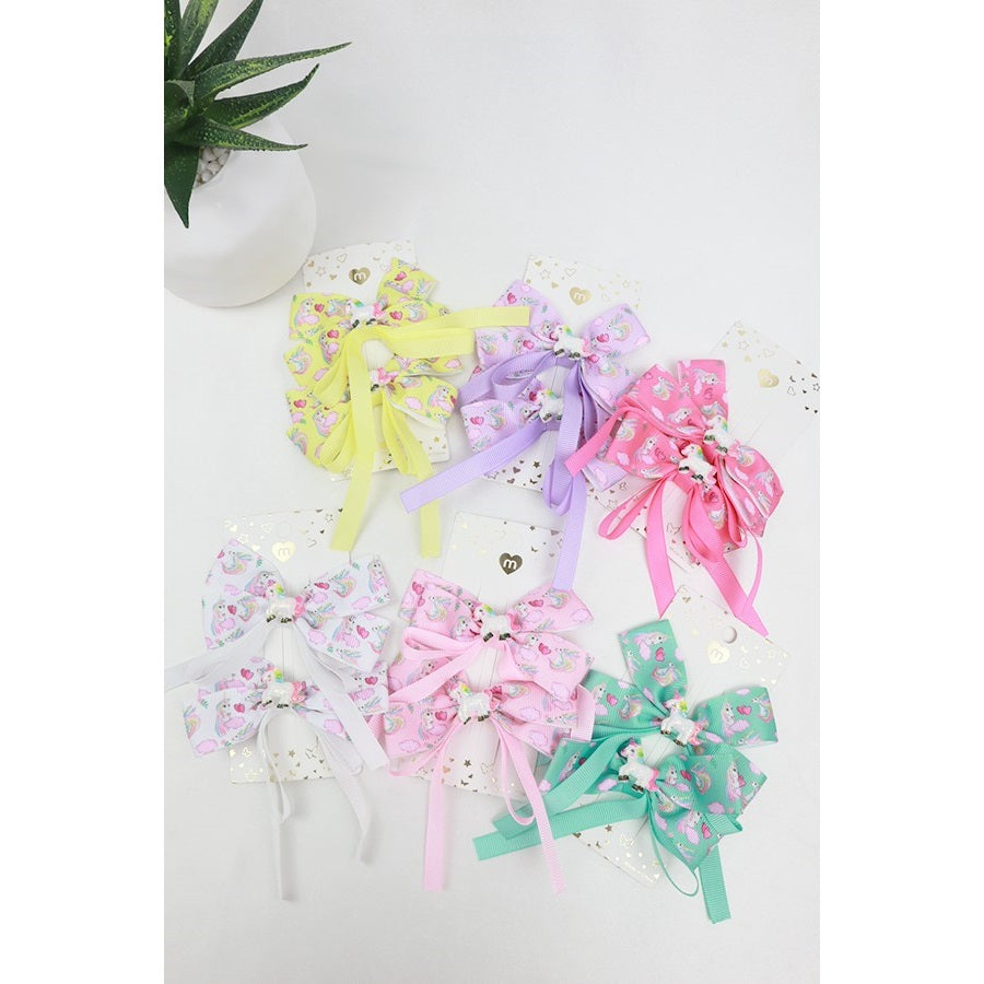 Add a pop of colour and charm to any hairstyle with these adorable Love and Repeat Unicorn Bows! Perfect for parties, dress-up, or everyday wear, these bows come in a variety of vibrant colours including yellow, lavender, pink, mint, and white. A fun and whimsical accessory for kids!