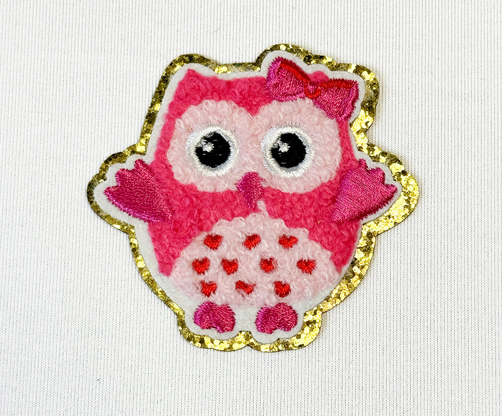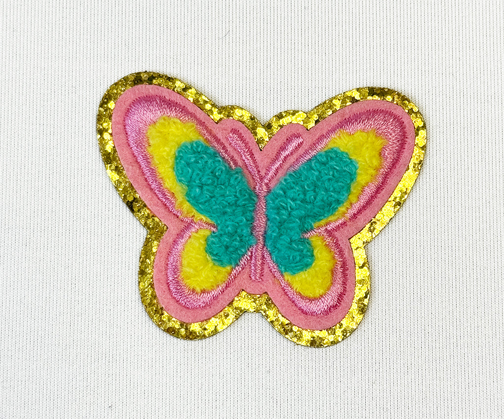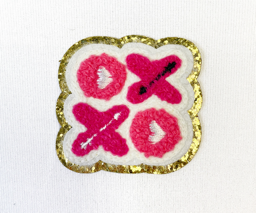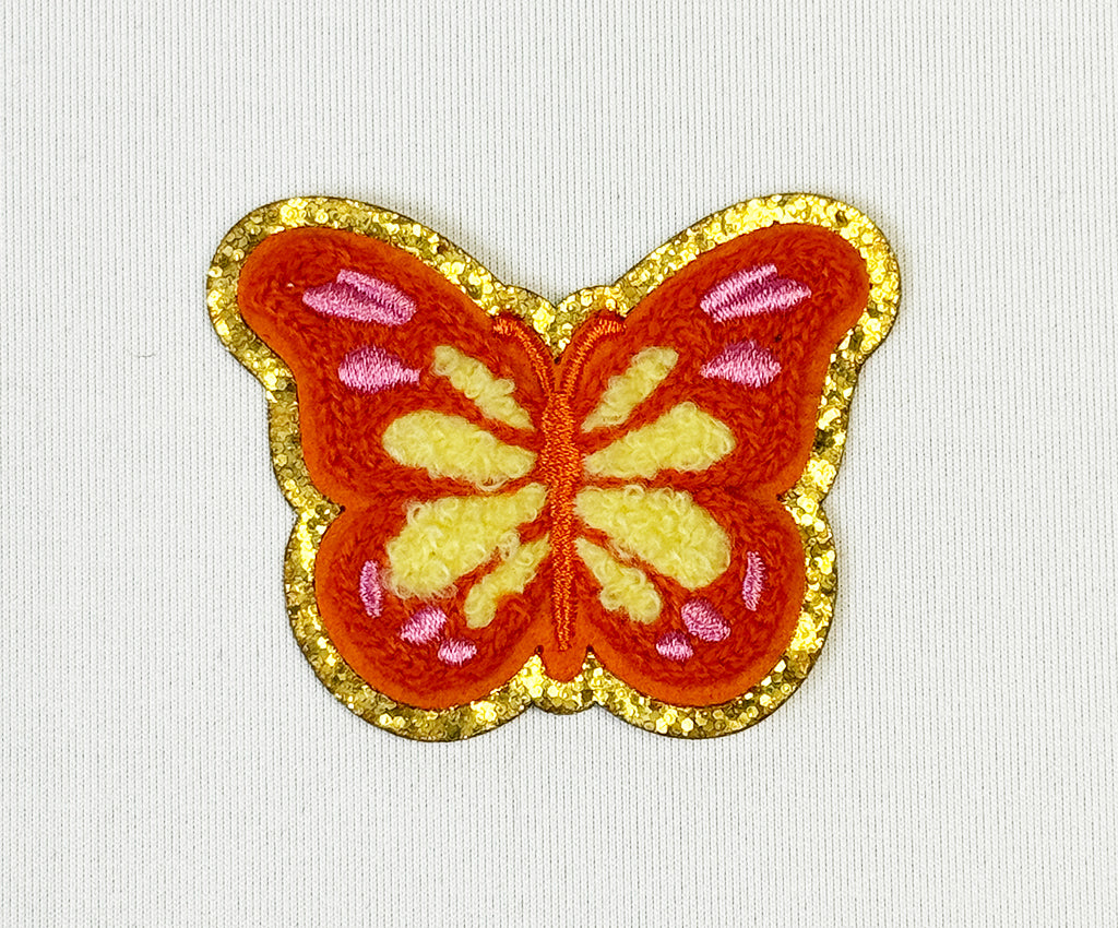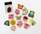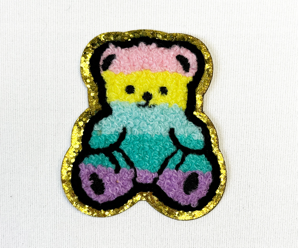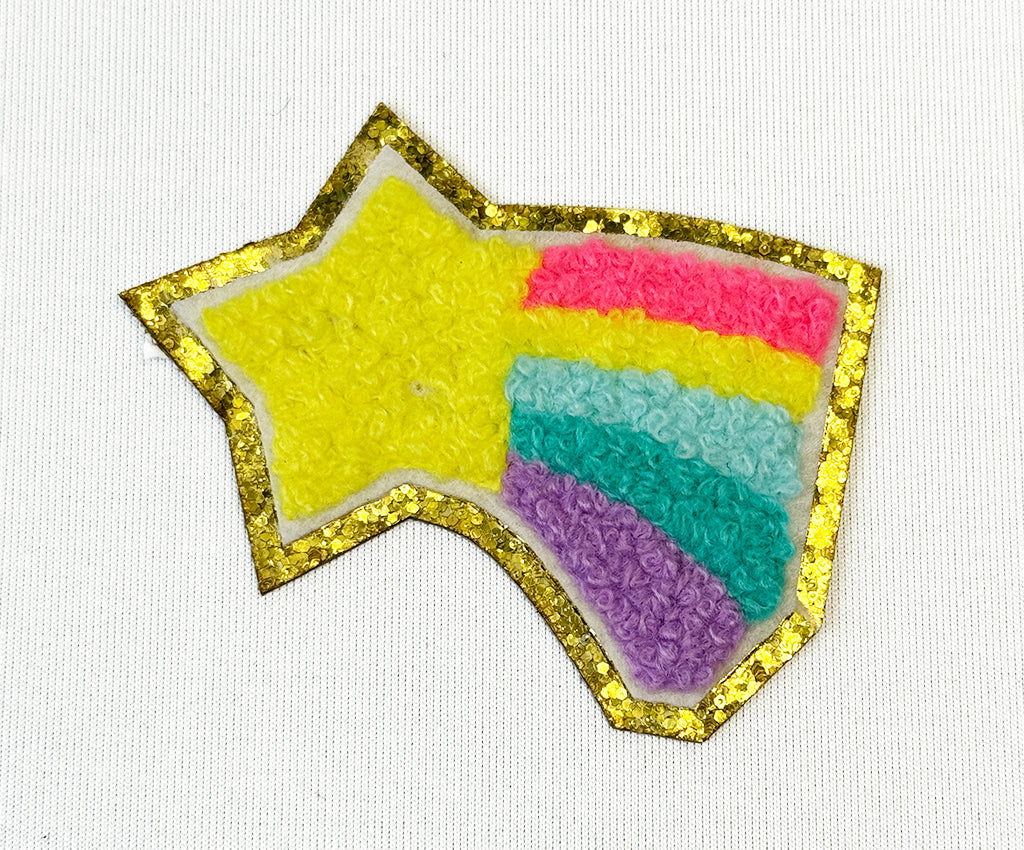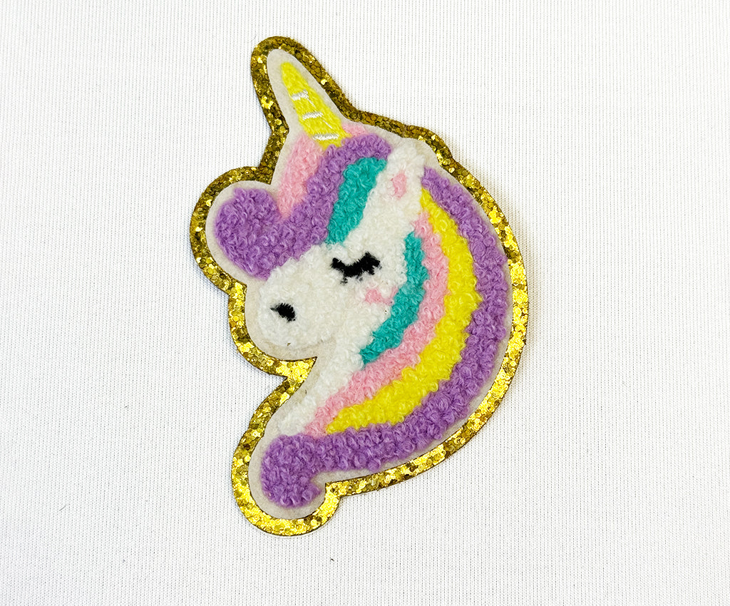 Customize your bag with these super cute self adhesive chenille sticker patches. They are the perfect way to add personality and flare. Made from high quality soft chenille fabric in fun colours with a gold glitter boarder with an easy peel and stick application. Great for tweens!