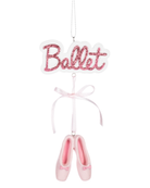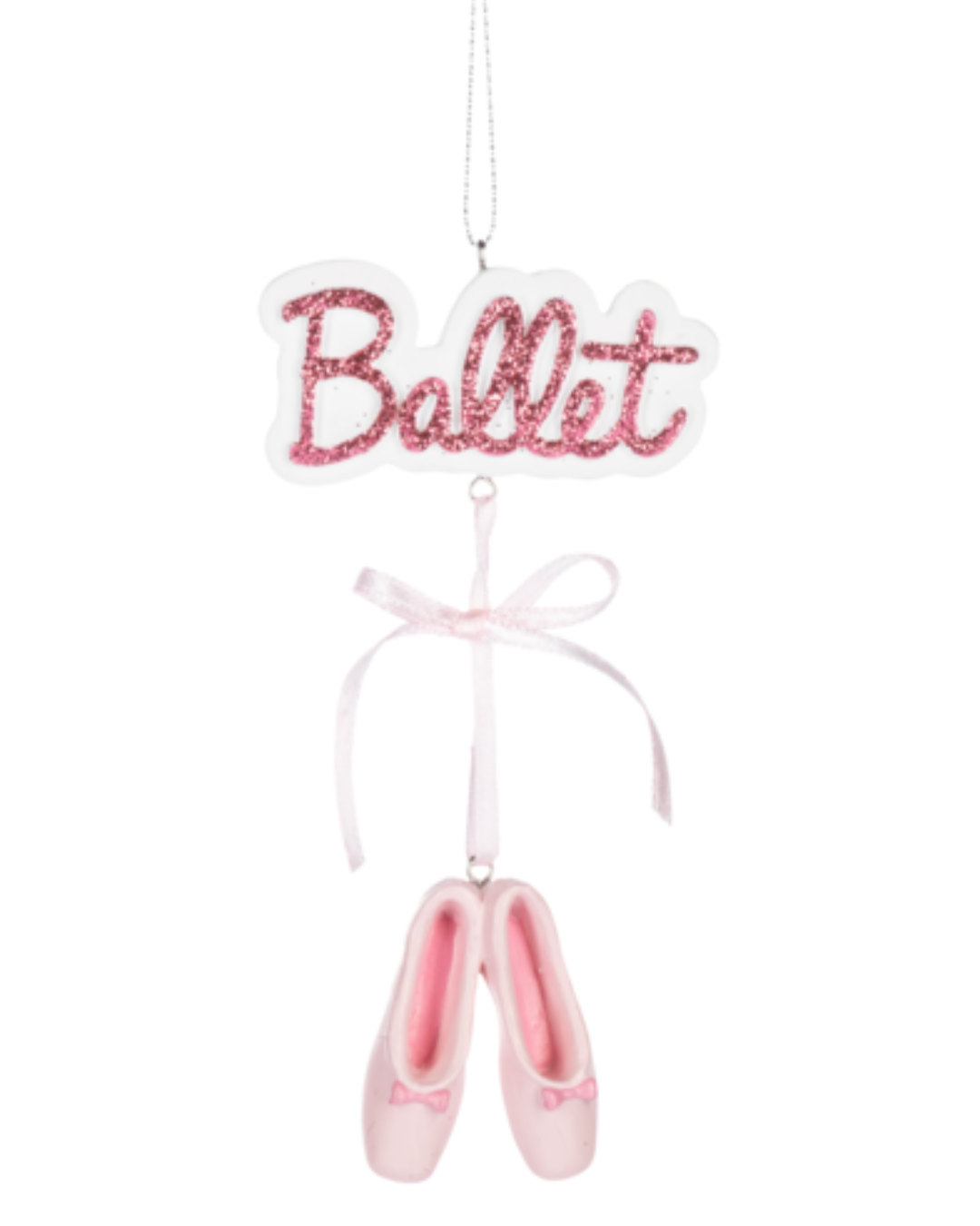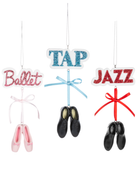 Fun and festive these ornaments are the perfect addition to your tree this holiday season. Sparkly resin word - Ballet, Tap or Jazz with a lovely ribbon bow and perfectly accurate resin dance shoe hanging from the ribbon. These ornaments make wonderfully unique gifts for the dancers on your list.