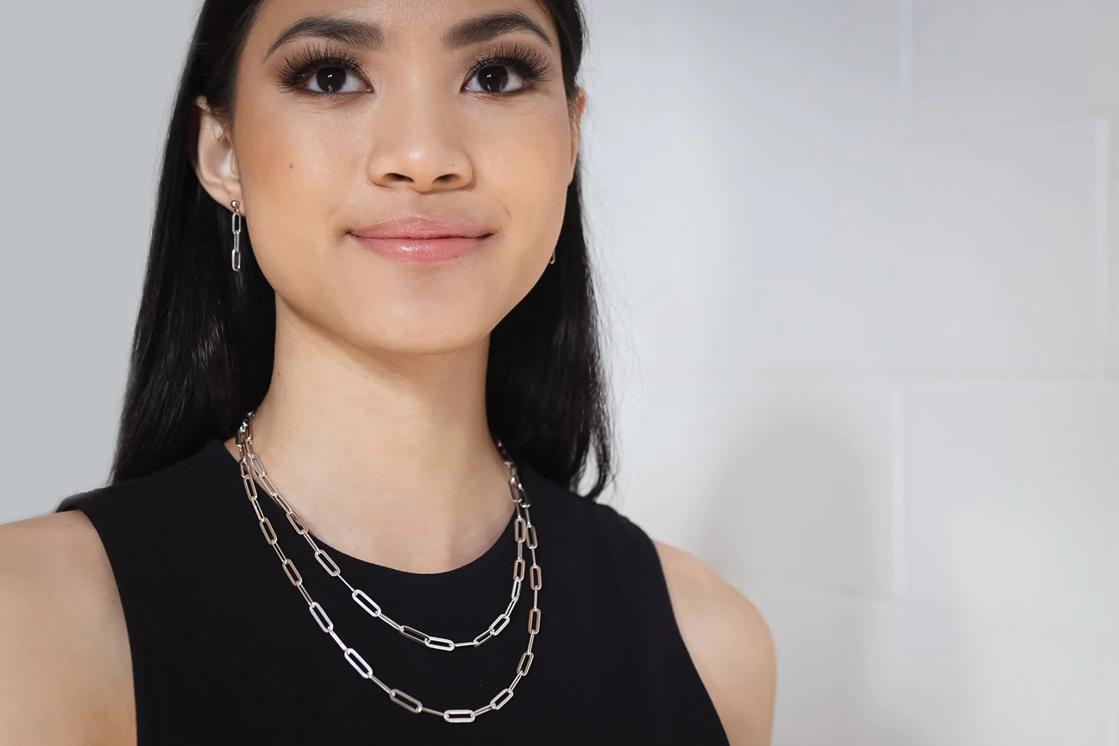 Complete the look by adding the Connection paper clip style necklace. Each pair of earrings is crafted from the highest grade sterling silver.