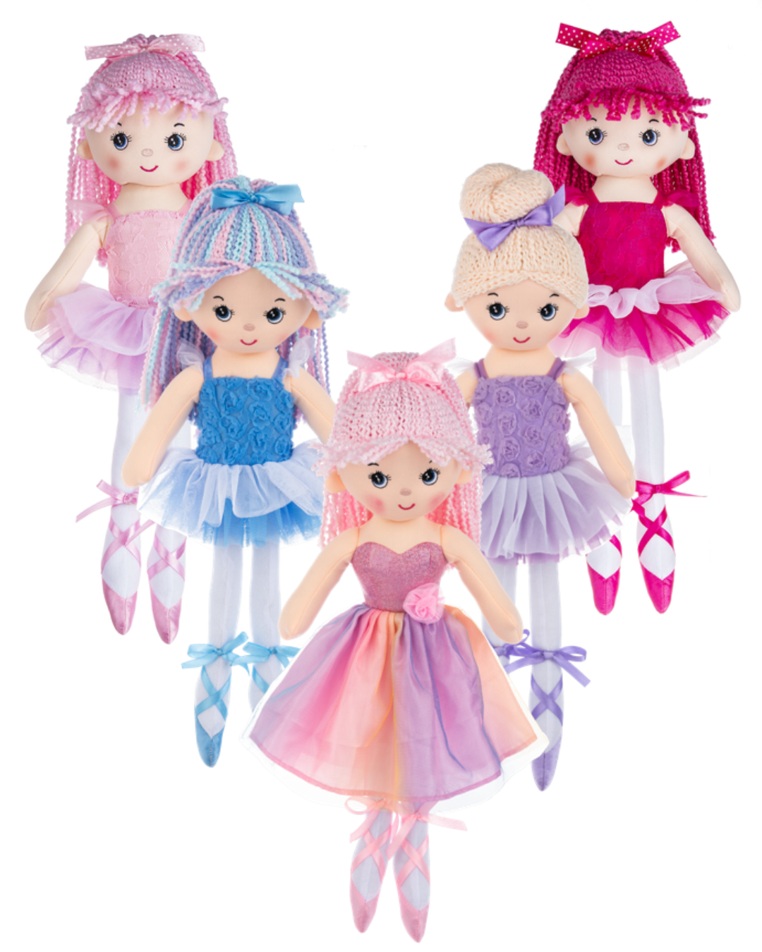 These ballerinas are vibrant and full of life, each wearing a colourful tutu with matching pointe shoes and perfectly styled hair. These dancers make a delightful gift for anyone who loves dance.