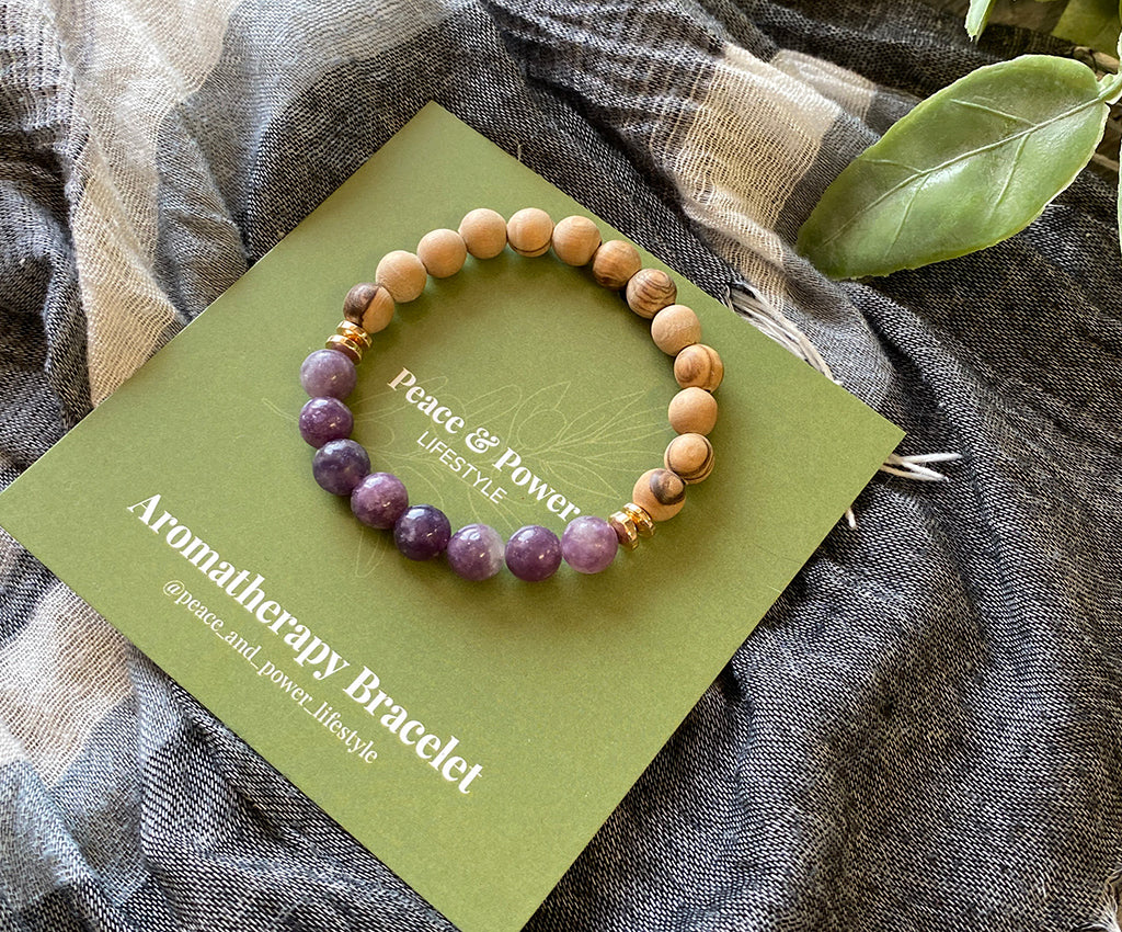 For aromatherapy add 1-2 drops of your favourite essential oil to the wooden beads over a paper towel. Wait for the oils to absorb into the beads before wearing. Reapply once the scent wears off.