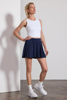 Perfect for tennis, golf, workouts, or just staying active, the Inspire High-Waisted Club Skort combines style and functionality. With excellent shape recovery, 4-way stretch, and built-in shorts with multi-storage pockets, including a tennis ball pocket, this skort will keep you comfortable and confident on the court and beyond. Pair with an MPG sport bra top and an activewear tank or tee.