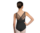 Mirella's Glow Girl V Neck Leotard features camisole straps and a V neck with a multiple strap crossover design at the back.