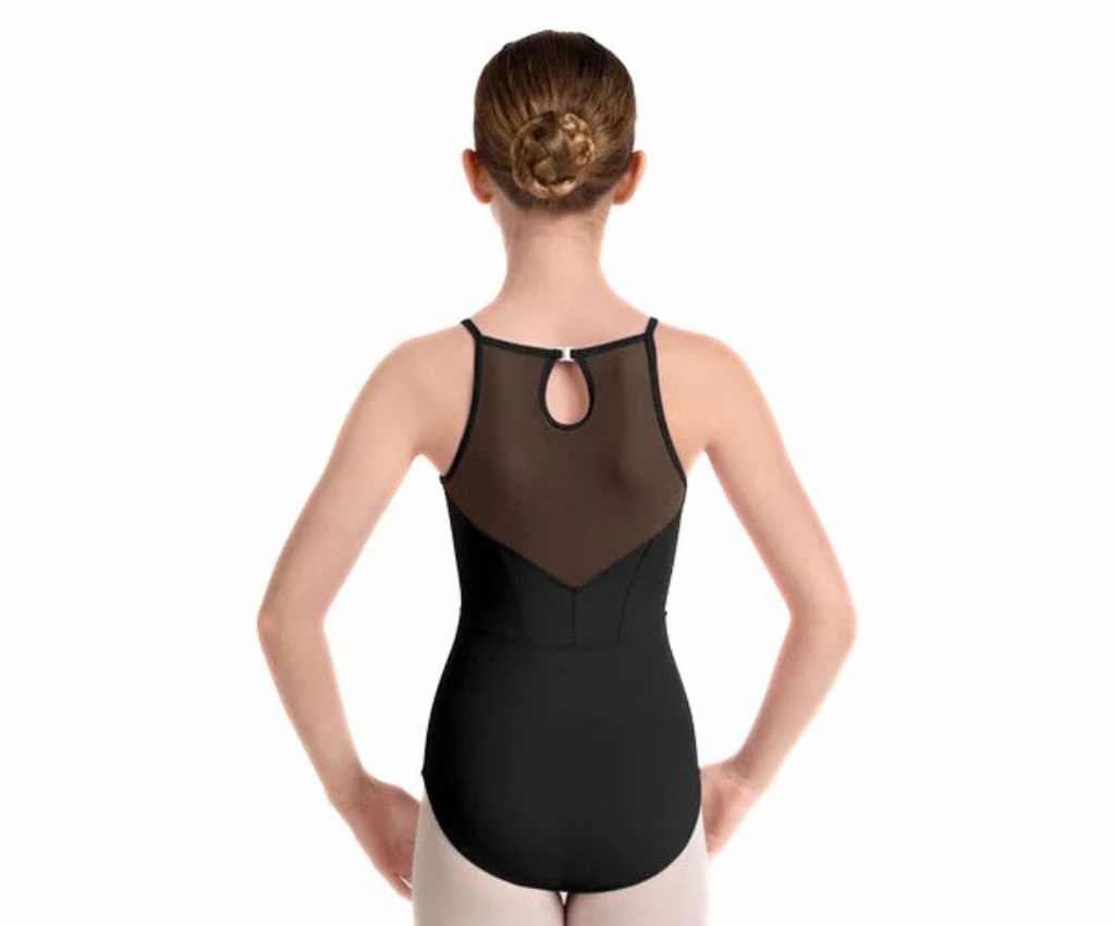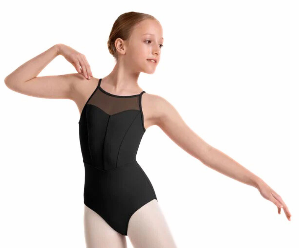 Mirella's Kaleidoscope Halterneck Leotard features a sophisticated high Halterneck with soft mesh panels, a romantic princess seamed bodice and delicate keyhole back with clip closure. Step into a world of color and creativity with Kaleidoscope, a dancewear collection made for young dancers who shine from the inside out. With soft pastel tones and playful geometric prints, each piece is thoughtfully designed to celebrate movement and imagination.
