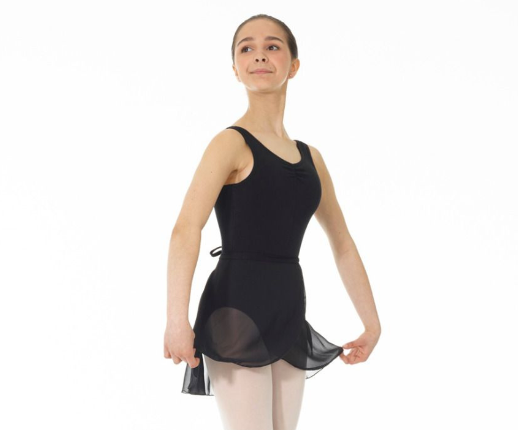 Mondor's chiffon wraparound skirt is a simple skirt, perfect for ballet class.