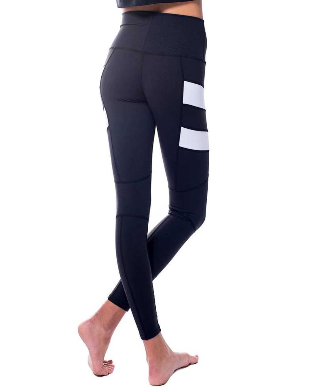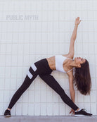 This daring Public Myth workout legging is going to give off enough confidence to build yourself an empire! This latest addition is made with contrasting panels on either side of the thigh for an edgy and unique look. High waisted, simple and clean - keeps everything in place creating a seamless and flattering look! Roll the waistband down for an instant low rise legging, two in one!