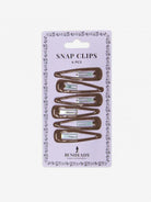Secure fly away hair with strong Snap Clips. Available in 4 colours to match your hair. Each package contains 6 snap clips.