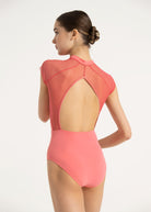 This Grishko leotard is made with super soft and silky Italian polyamide micro fabric. It features a zip front with a triangular opening on the back, cap sleeve style with a cut out mesh back. The flocked Italian mesh and microfiber on the bodice provides a sophisticated touch. The front is fully lined. Beautiful leotard for dance class, convention or photoshoots.