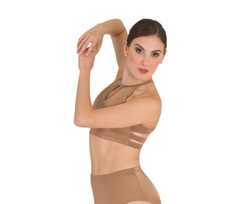 This Bodywrappers Premier crop top fits so well. It has a supportive bodice with a keyhole front & back. Secure elastic waist to back strap. Princess front & back styling & secure metal snap closure at neckline. MemoryStretch front lining.