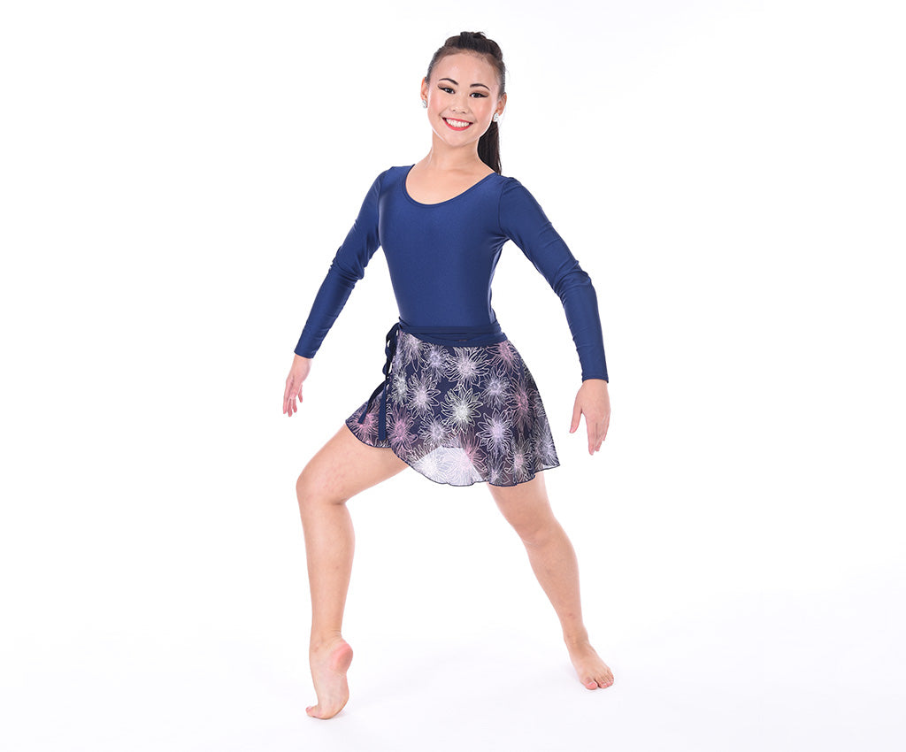 These MOD wrap skirts are great for ballet, or to add a simple finish to a costume. Made of chiffon and finished with a narrow rolled hem. They have a matching stretch lycra tie that is long enough to wrap around waist several times and cut to length as needed.