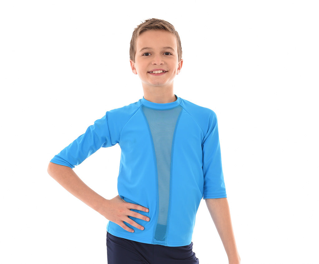This classy top of breathable UV treated high quality Italian Spandex and quality mesh is so comfortable. Looser fitting with a higher neckline and soft fabric neckband, there is a stylish matching mesh insert on the front and a raglan cut 1/2 sleeve. With professionally finished hem & sleeve this top is available in a large range of colours to match girls Convention Wear and compliment other collection pieces.
