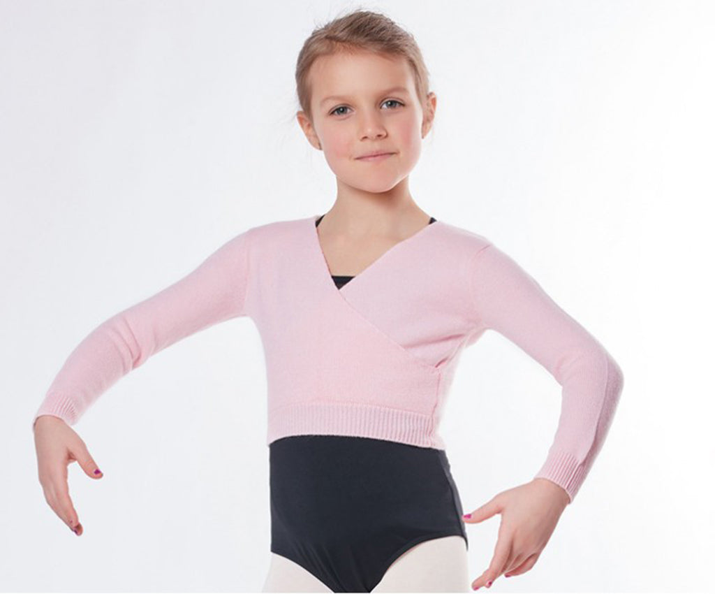 This mock wrap knit sweater by Sansha is super soft and comfortable.  Great warm up item for the little dancers.